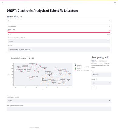 In this work, we present to the NLP community, and to the wider research community as a whole, an application for the diachronic analysis of research corpora. We open source an easy-to-use tool coined: DRIFT, which allows researchers to track research trends and development over the years. The analysis methods are collated from well-cited research works, with a few of our own methods added for good measure. Succinctly put, some of the analysis methods are: keyword extraction, word clouds, predicting declining/stagnant/growing trends using Productivity, tracking bi-grams using Acceleration plots, finding the Semantic Drift of words, tracking trends using similarity, etc. To demonstrate the utility and efficacy of our tool, we perform a case study on the cs.CL corpus of the arXiv repository and draw inferences from the analysis methods. The toolkit and the associated code are available here: https://github.com/rajaswa/DRIFT.