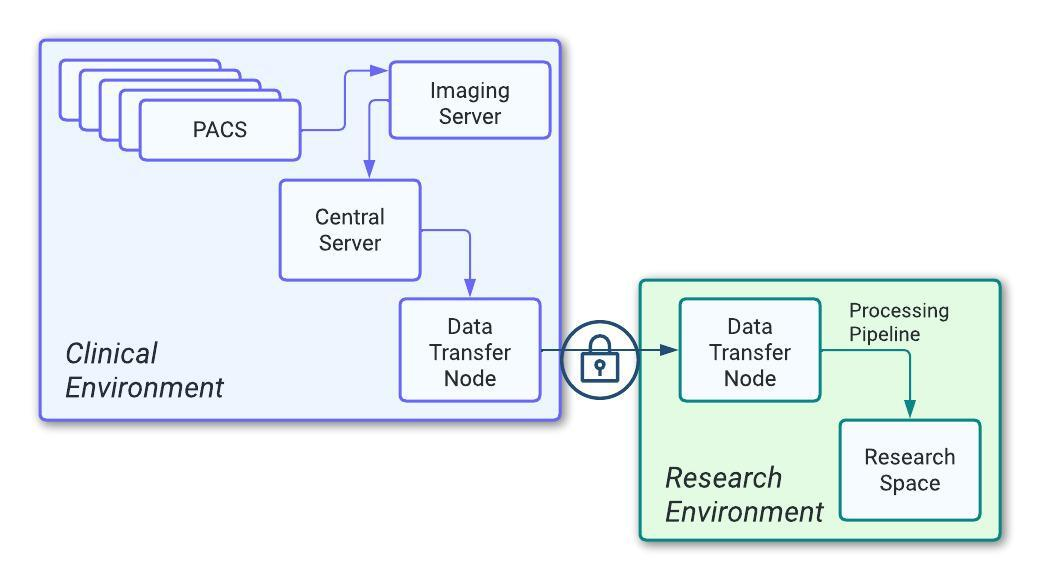The compilation and analysis of radiological images poses numerous challenges for researchers. The sheer volume of data as well as the computational needs of algorithms capable of operating on images are extensive. Additionally, the assembly of these images alone is difficult, as these exams may differ widely in terms of clinical context, structured annotation available for model training, modality, and patient identifiers. In this paper, we describe our experiences and challenges in establishing a trusted collection of radiology images linked to the United States Department of Veterans Affairs (VA) electronic health record database. We also discuss implications in making this repository research-ready for medical investigators. Key insights include uncovering the specific procedures required for transferring images from a clinical to a research-ready environment, as well as roadblocks and bottlenecks in this process that may hinder future efforts at automation.