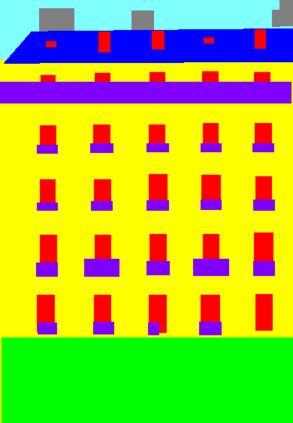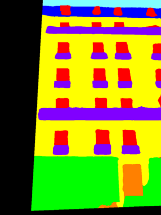 Building facade parsing, which predicts pixel-level labels for building facades, has applications in computer vision perception for autonomous vehicle (AV) driving. However, instead of a frontal view, an on-board camera of an AV captures a deformed view of the facade of the buildings on both sides of the road the AV is travelling on, due to the camera perspective. We propose Facade R-CNN, which includes a transconv module, generalized bounding box detection, and convex regularization, to perform parsing of deformed facade views. Experiments demonstrate that Facade R-CNN achieves better performance than the current state-of-the-art facade parsing models, which are primarily developed for frontal views. We also publish a new building facade parsing dataset derived from the Oxford RobotCar dataset, which we call the Oxford RobotCar Facade dataset. This dataset contains 500 street-view images from the Oxford RobotCar dataset augmented with accurate annotations of building facade objects. The published dataset is available at https://github.com/sijieaaa/Oxford-RobotCar-Facade