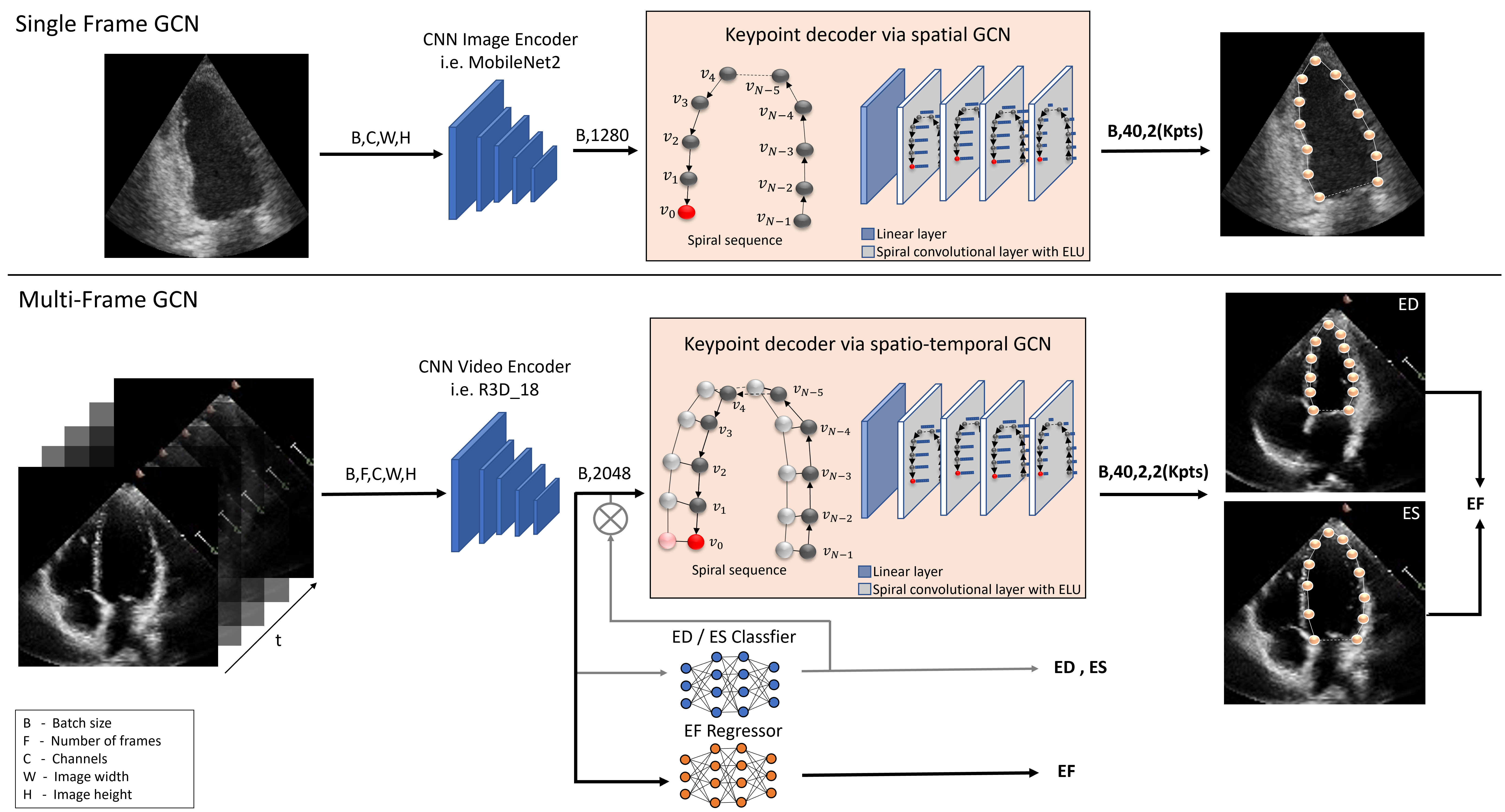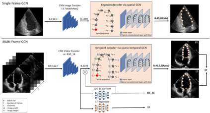 翻译:对回声心电图参数的准确和一致预测对于心血管诊断和治疗十分重要,特别是左心室的分块可用于产生心血管体积、弹出分数(EF)和其他相关测量结果。在本文件中,我们提出一种新的自动化方法,称为EchoGraphs,用于预测弹出分数,并通过探测解剖关键点对左心室进行分解。根据图表变异网络(GCNs)进行直接协调回归模型用于检测关键点。GCNs可以学习根据每个关键点的局部外观以及所有关键点的全球空间和时间结构来代表心脏形状。我们在EchoNet基准数据集上对EchoGraphs模型进行了评估。与语系分化相比,GCNs显示了准确的分化和稳健度和推断运行时间的改进。EF是同时计算分解的,我们的方法也获得了最新化的弹射分数估计。源代码可在线查阅:https://github.com/guybenyos/Echophophs。