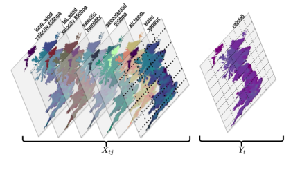 翻译:气候模型(CM)用于评估气候变化对洪水和强烈降水事件风险的影响;然而,这些数字模拟器难以准确地代表降水事件,主要原因是在模拟大气中多尺度动态时空间分辨率有限;为了改进高分辨率降水的预测,我们采用深度学习(DL)方法,利用模型领域(天气变量)的内存模拟(比当地降水更可预测的气候变量)的投入来改进高分辨率降水量的预测;为此,我们介绍了一个编码器脱coder-NET(临时经常性U-Net)模型,这是一种编码器脱coder-Decoder模型,其特点是连接的连续连续连续周期层之间的2D交叉关注机制,以有效模拟多尺度阵列时空天气过程的空间分辨率分辨率有限;我们使用一个有条件的连续损失函数来捕捉零偏差的降雨量事件模式(DL)。实验表明,我们的模型比短期降水量预测中流行的DL模型一直低RME和MAE分,并改进了对最新动态动态气象模型的降水量预测。此外,我们通过评估高质量模型的绩效,在各种数据测试和模型下充分展示了我们不同阶段的数据。