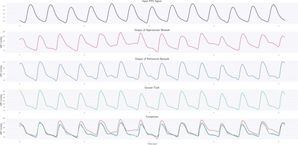 翻译:心血管疾病是造成死亡的最严重原因之一,每年在全世界造成大量生命死亡。持续监测血压似乎是最可行的选择,但这需要一种入侵过程,带来多层次的复杂性。这促使我们开发一种方法,利用光胸成像信号(PPG)以非侵入方式预测连续动脉血压(ABP)波形。此外,我们探索了深层次学习的好处,因为只有深层次学习才能使我们不再坚持理想的PPPG信号,通过手工艺特征计算是不相关的,而这是现有方法的一个缺陷。因此,我们介绍PPG2ABP这一深层学习基础方法,它能够从输入的 PPPG信号中预测ABP的连续动波形(ABP),其明显的绝对误差为4.604毫米Hg,保持形状、规模和阶段的一致。然而,PPPG2ABP的更令人吃惊的成功证明的是,尽管预测的ABP、MA和SPBP2的计算值并不明显高于PGA。