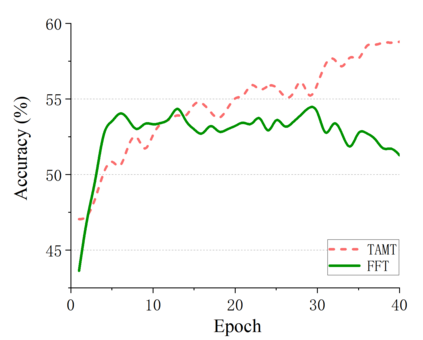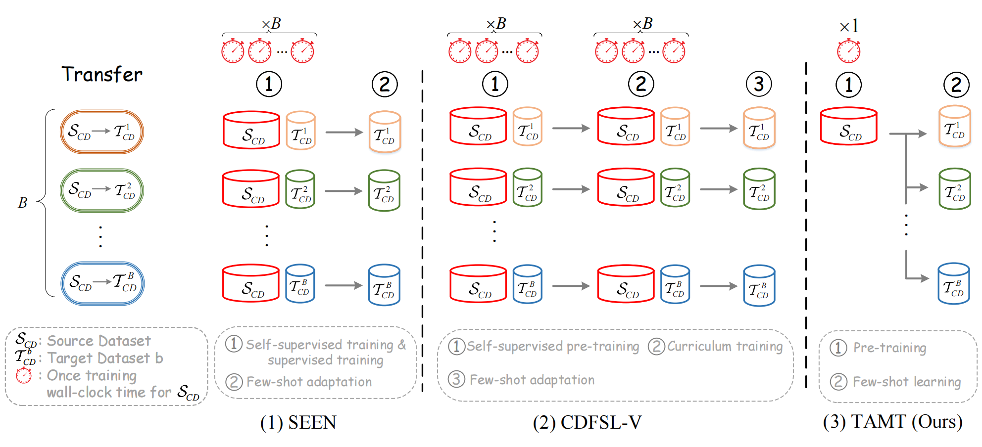 Going beyond few-shot action recognition (FSAR), cross-domain FSAR (CDFSAR) has attracted recent research interests by solving the domain gap lying in source-to-target transfer learning. Existing CDFSAR methods mainly focus on joint training of source and target data to mitigate the side effect of domain gap. However, such kind of methods suffer from two limitations: First, pair-wise joint training requires retraining deep models in case of one source data and multiple target ones, which incurs heavy computation cost, especially for large source and small target data. Second, pre-trained models after joint training are adopted to target domain in a straightforward manner, hardly taking full potential of pre-trained models and then limiting recognition performance. To overcome above limitations, this paper proposes a simple yet effective baseline, namely Temporal-Aware Model Tuning (TAMT) for CDFSAR. Specifically, our TAMT involves a decoupled paradigm by performing pre-training on source data and fine-tuning target data, which avoids retraining for multiple target data with single source. To effectively and efficiently explore the potential of pre-trained models in transferring to target domain, our TAMT proposes a Hierarchical Temporal Tuning Network (HTTN), whose core involves local temporal-aware adapters (TAA) and a global temporal-aware moment tuning (GTMT). Particularly, TAA learns few parameters to recalibrate the intermediate features of frozen pre-trained models, enabling efficient adaptation to target domains. Furthermore, GTMT helps to generate powerful video representations, improving match performance on the target domain. Experiments on several widely used video benchmarks show our TAMT outperforms the recently proposed counterparts by 13%$\sim$31%, achieving new state-of-the-art CDFSAR results.