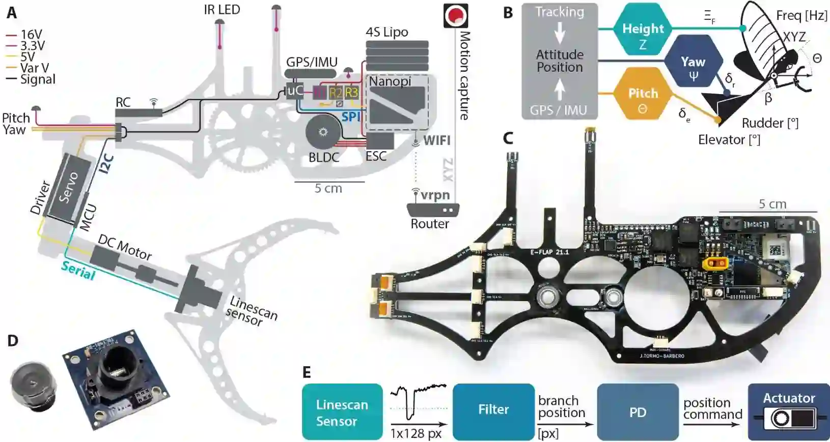 翻译:扇形翅膀是一种生物激励的方法,用来在空中机器人中制造升降和推力,导致静静和高效运动。这种技术的优点是安全性和机动性,以及与环境、人类和动物的物理互动。然而,为了能够进行大量应用,这些机器人必须穿孔和降落。尽管在冲浪场方面最近取得了进展,但拍动翼车辆,或或机翼机翼机翼,至今还无法停止在树枝上的飞行。在本文中,我们提出了一个新颖的方法,该方法界定了在树枝上可靠和自主地降落一个树枝的过程。这个方法描述了一个拍动式的飞速控制器、一个近距离的校正系统和一个被动的爪子附附体的操作。 由一个三长的双向高射线控制器和一个综合的机体电子化控制器来操作。 近距离校正的校正系统,近距离的校正系统可以弥补着陆时位置上的偏差。 由被动的银爪子设计可以锁定和保持2毫米的铁杆,在25米之内,可以重新进行飞行,然后再打开一个方向, 感谢一个成功的系统,一个成功的飞行,一个成功的飞行将一个成功的飞行进行一个成功的飞行,一个成功的操作,一个成功的操作, 一个成功的系统,一个成功的操作,一个成功的飞行, 一个成功的飞行, 一个成功的飞行, 一个成功的飞行, 一个成功的操作一个成功的飞行, 一个成功的系统将一个成功的系统, 一个成功的飞行, 一个成功的飞行, 一个成功的系统, 一个成功的, 一个成功的系统, 一个成功的, 一个成功的, 一个成功的, 一个成功的, 一个成功的, 一个成功的, 一个成功的, 一个成功的, 一个成功的, 一个成功的, 一个成功的, 一个成功的, 一个成功的, 一个成功的, 一个成功的, 一个成功的, 一个成功的, 一个成功的, 一个成功的, 一个成功的, 一个成功的, 一个成功的, 一个成功的, 一个成功的, 一个成功的, 一个成功的, 一个成功的, 一个成功的, 一个成功的, 一个成功的, 一个成功的, 一个成功的, 一个成功的, 一个成功的, 一个成功的, 一个成功的, 一个成功的, 一个成功的, 一个成功的, 一个成功的, 一个成功的, 一个成功的, 一个成功的, 一个成功的, 一个成功的, 一个成功的, 一个循环的, 一个成功的, 一个成功的, 一个循环的, 的, 一个成功的, 一个成功的, 一个循环的, 的, 一个成功的, 一个成功的, 的, 的,
