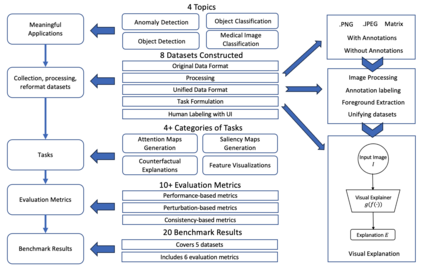 The rise of deep learning algorithms has led to significant advancements in computer vision tasks, but their "black box" nature has raised concerns regarding interpretability. Explainable AI (XAI) has emerged as a critical area of research aiming to open this "black box", and shed light on the decision-making process of AI models. Visual explanations, as a subset of Explainable Artificial Intelligence (XAI), provide intuitive insights into the decision-making processes of AI models handling visual data by highlighting influential areas in an input image. Despite extensive research conducted on visual explanations, most evaluations are model-centered since the availability of corresponding real-world datasets with ground truth explanations is scarce in the context of image data. To bridge this gap, we introduce an XAI Benchmark comprising a dataset collection from diverse topics that provide both class labels and corresponding explanation annotations for images. We have processed data from diverse domains to align with our unified visual explanation framework. We introduce a comprehensive Visual Explanation pipeline, which integrates data loading, preprocessing, experimental setup, and model evaluation processes. This structure enables researchers to conduct fair comparisons of various visual explanation techniques. In addition, we provide a comprehensive review of over 10 evaluation methods for visual explanation to assist researchers in effectively utilizing our dataset collection. To further assess the performance of existing visual explanation methods, we conduct experiments on selected datasets using various model-centered and ground truth-centered evaluation metrics. We envision this benchmark could facilitate the advancement of visual explanation models. The XAI dataset collection and easy-to-use code for evaluation are publicly accessible at https://xaidataset.github.io.