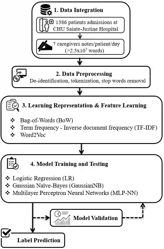 翻译:临床数据管理系统和人工智能方法的迅速进展使个人化医学时代得以进入。密集护理单位(ICUs)是这种发展的理想临床研究环境,因为它们收集了许多临床数据,并且是高度电脑化的环境。我们设计了对未来的ICU数据库的追溯性临床研究,使用临床自然语言帮助早期诊断重病儿童的心脏衰竭。方法包括学习法国临床说明数据隐蔽解释和表述的学习算法实验。这项研究包括1386个病人的临床笔记,共5444条单行注。1941个积极病例(占总数的36%)和3 503个由两名独立医生用标准化方法分类的负病例。多层透视神经网络优于其他歧视和基因化分类师。因此,拟议框架得出了89%准确性、88 %记得和89 %精确性的总体分类性表现。这项研究成功地应用了学习代表性和机算算算法,以在单一的法国机构中从临床自然语言中检测心脏衰竭。还需要开展进一步工作,以便在其他机构和其他语言中使用同样的方法。