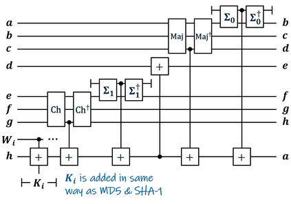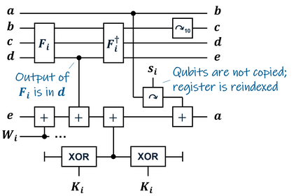 翻译:量子软件框架为软件工程师提供了工具,用于研究适用于实际问题的量子算法。我们用古典散列函数MD5、SHA-1、SHA-2和SHA-3作为量子神器,研究用Grover的Algorithm进行预视攻击的计算资源需求。我们改进了SHA-3 甲骨文,将Keccak区块调整所需的逻辑qubts数量减少40%。