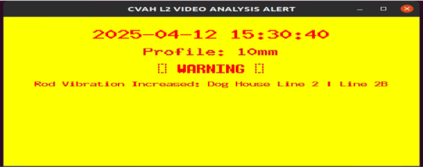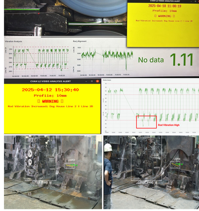 We present a long-term deployment study of a machine vision-based anomaly detection system for failure prediction in a steel rolling mill. The system integrates industrial cameras to monitor equipment operation, alignment, and hot bar motion in real time along the process line. Live video streams are processed on a centralized video server using deep learning models, enabling early prediction of equipment failures and process interruptions, thereby reducing unplanned breakdown costs. Server-based inference minimizes the computational load on industrial process control systems (PLCs), supporting scalable deployment across production lines with minimal additional resources. By jointly analyzing sensor data from data acquisition systems and visual inputs, the system identifies the location and probable root causes of failures, providing actionable insights for proactive maintenance. This integrated approach enhances operational reliability, productivity, and profitability in industrial manufacturing environments.