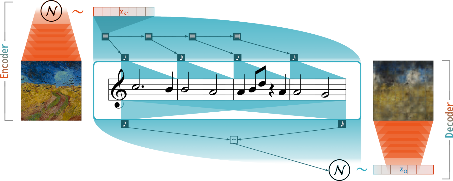 翻译:这项研究中引入的合成审美变异自动编码器(SynVAE)能够在没有配对数据集的情况下,在视觉和审计感知模式之间取得一致的制图。对MNIST和Behance艺术媒体数据集的定量评价表明,SynVAE能够在翻译过程中保留足够的信息内容,同时保持跨模式潜藏空间的一致性。在定性评价试验中,人类评价员还能够将音乐样品与产生这些样品的图像相匹配,其精密度高达73%。