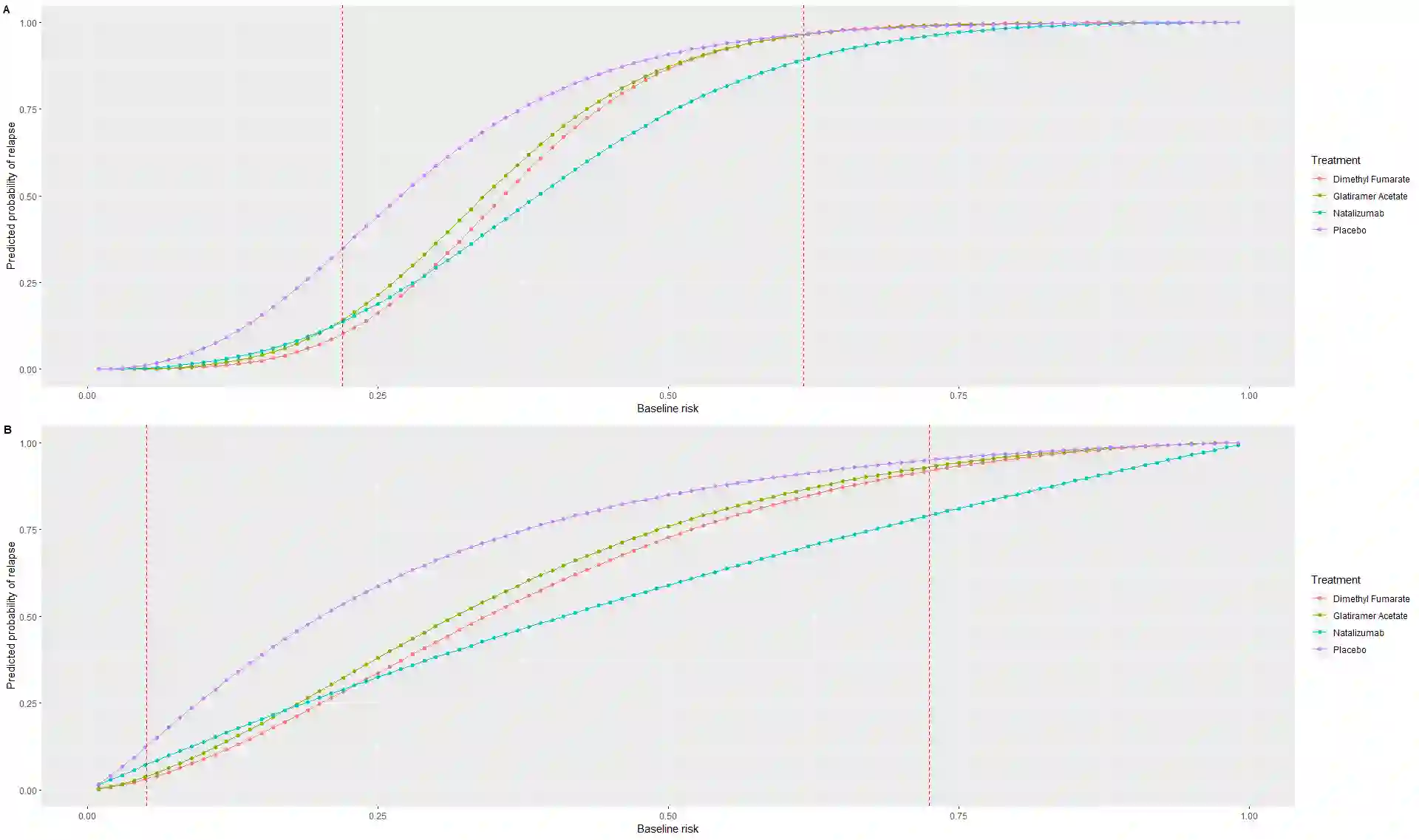 翻译:不同患者的治疗效果各不相同,估计这种差异性对于临床决策很重要。目的是开发一个模型来估计为个别患者提供替代治疗方案的益处。因此,我们开发了一种用于不同治疗效果的两阶段预测模型,将预测研究和网络元分析方法结合起来,供个别患者提供数据时使用。在第一阶段,我们开发了一个预测模型,并预测结果的基线风险。在第二阶段,我们使用第一阶段的这一基线风险评分作为单一的预测因素,并用于网络元反回归模型中的影响修正器。我们采用这一方法,对Natalizumab、Glatiramer Acetate和Dimet Fumarate的三次随机临床试验进行网络元分析,比较复发率,包括预测研究和网络元分析方法。在第一阶段,我们开发了一个预测模型模型模型模型模型,预测结果的基线评分可以改变相对和绝对的治疗效果。一些病人特征,例如年龄和残疾状况对网络复发基线风险的影响,这反过来可以调节每一次治疗的预期好处。对于每一次治疗的复发率而言,最有可能使每个患者的复发性治疗都处于低风险期,而后期。对于后期的治疗而言,最有可能是低风险期。对低风险期的治疗具有后期。对低风险期进行。对低风险期的治疗的治疗具有两年进行最深期。对低风险率。
