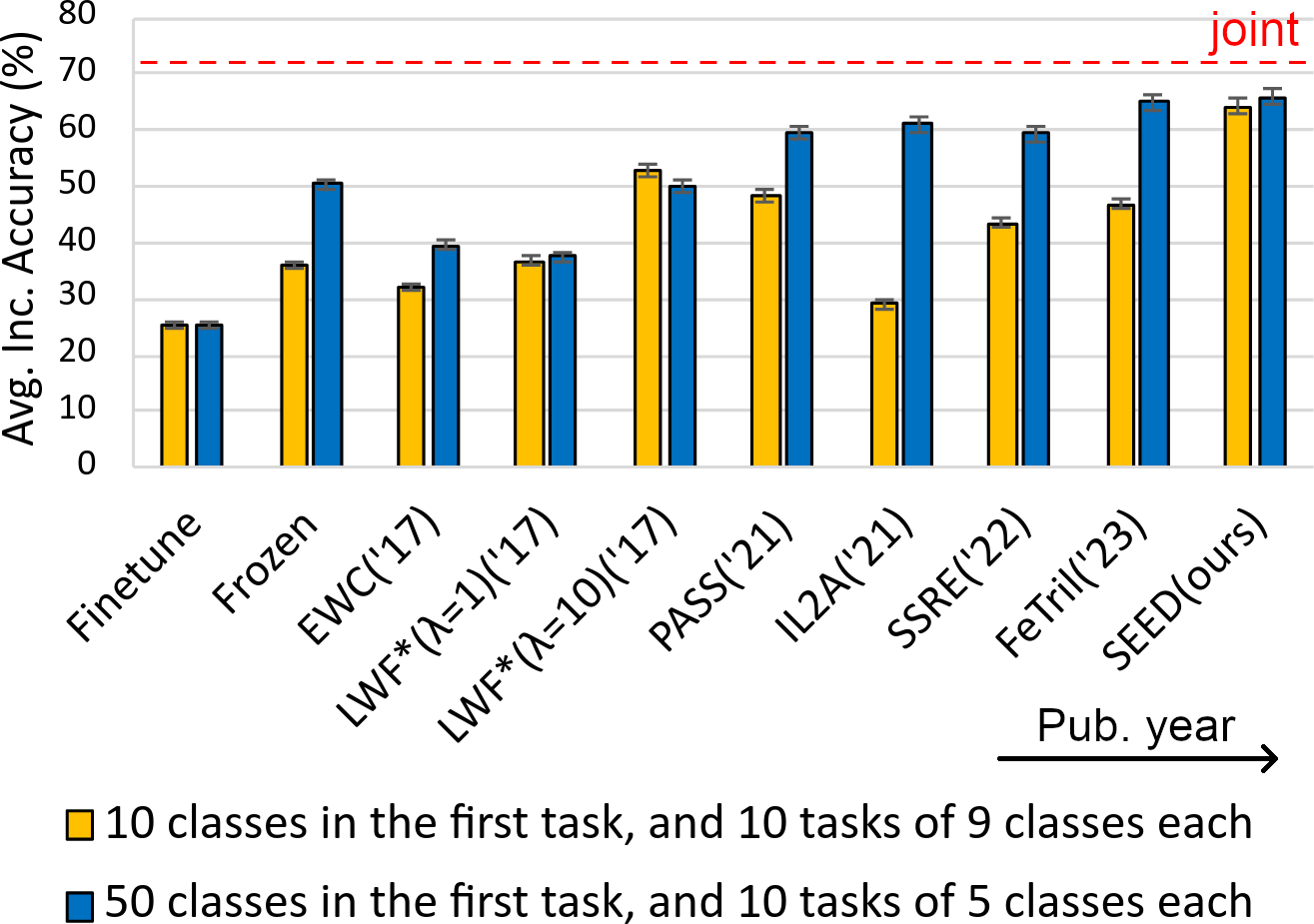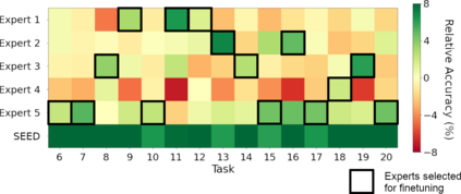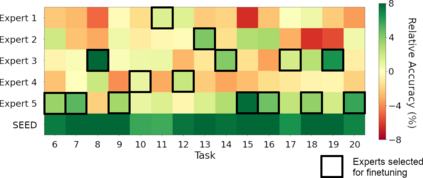 Class-incremental learning is becoming more popular as it helps models widen their applicability while not forgetting what they already know. A trend in this area is to use a mixture-of-expert technique, where different models work together to solve the task. However, the experts are usually trained all at once using whole task data, which makes them all prone to forgetting and increasing computational burden. To address this limitation, we introduce a novel approach named SEED. SEED selects only one, the most optimal expert for a considered task, and uses data from this task to fine-tune only this expert. For this purpose, each expert represents each class with a Gaussian distribution, and the optimal expert is selected based on the similarity of those distributions. Consequently, SEED increases diversity and heterogeneity within the experts while maintaining the high stability of this ensemble method. The extensive experiments demonstrate that SEED achieves state-of-the-art performance in exemplar-free settings across various scenarios, showing the potential of expert diversification through data in continual learning.