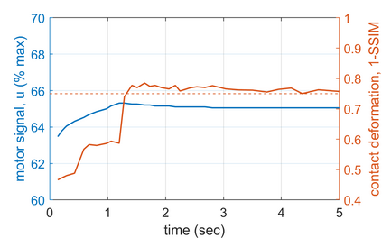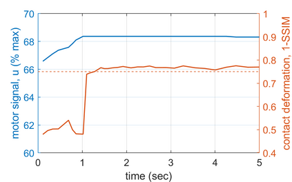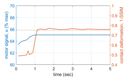 翻译:在这项工作中,我们报告对Pisa/IIT SoftHand(一种围绕适应性协同增效原则设计的人类形态软机器人手)的综合感官控制,即BRL触摸指点(TacTip),一种基于人类触感的软生物模拟光学光学触摸传感器。我们的重点是如何利用触觉感感来控制一个具有某种感知力的人体形态手,其作用力以尊重手的机械功能的整合为基础。我们考虑:(一) 闭路触控,以便在一个未知的被搁置物体上建立光接触,其依据是未变形触动图像的结构相似性;(二) 利用为控制TacTip家族的其他传感器而开发的演动神经网络方法,控制一个被搁置物体的边缘特征的估计面部。总体而言,这为将软机器人手与人似触碰的内嵌入、操纵、人类机器人相互作用和假肢的影响打下奠定了基础。 补充视频: https://youtu/robends。
