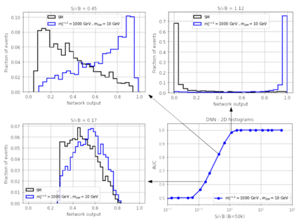 翻译:我们使用神经网络在LHC研究几种简化的暗物质(DM)模型及其特征。 我们侧重于通常的单喷射和缺失的跨反向能源频道,但是要培训算法,我们用2D直方图而不是逐个事件阵列来组织数据。 这导致一个很大的性能提升来区分标准模型(SM)和SM加新物理信号。 我们使用运动单体单体喷射功能作为输入数据, 使我们能够用一个数据样本来描述模型的家庭。 我们发现神经网络的性能并不取决于模拟的背景事件数量, 如果它们显示为美元/\\ sqrt{B}$的函数, 而美元和美元是每个直方图的信号和背景事件数量。 这为方法提供了灵活性, 因为在此情况下测试一个特定模型只需要了解新的物理单体截面部分。 此外, 我们还在对真实的DM性质错误假设下讨论网络性能。 最后,我们建议多个模型分类员以更笼统的方式搜索和识别新的信号, 用于下一个LHCS 运行 。