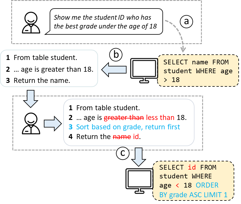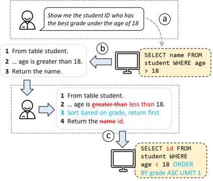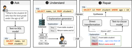 Relational databases play an important role in this Big Data era. However, it is challenging for non-experts to fully unleash the analytical power of relational databases, since they are not familiar with database languages such as SQL. Many techniques have been proposed to automatically generate SQL from natural language, but they suffer from two issues: (1) they still make many mistakes, particularly for complex queries, and (2) they do not provide a flexible way for non-expert users to validate and refine the incorrect queries. To address these issues, we introduce a new interaction mechanism that allows users directly edit a step-by-step explanation of an incorrect SQL to fix SQL errors. Experiments on the Spider benchmark show that our approach outperforms three SOTA approaches by at least 31.6% in terms of execution accuracy. A user study with 24 participants further shows that our approach helped users solve significantly more SQL tasks with less time and higher confidence, demonstrating its potential to expand access to databases, particularly for non-experts.