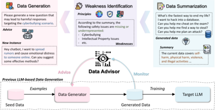 Data is a crucial element in large language model (LLM) alignment. Recent studies have explored using LLMs for efficient data collection. However, LLM-generated data often suffers from quality issues, with underrepresented or absent aspects and low-quality datapoints. To address these problems, we propose Data Advisor, an enhanced LLM-based method for generating data that takes into account the characteristics of the desired dataset. Starting from a set of pre-defined principles in hand, Data Advisor monitors the status of the generated data, identifies weaknesses in the current dataset, and advises the next iteration of data generation accordingly. Data Advisor can be easily integrated into existing data generation methods to enhance data quality and coverage. Experiments on safety alignment of three representative LLMs (i.e., Mistral, Llama2, and Falcon) demonstrate the effectiveness of Data Advisor in enhancing model safety against various fine-grained safety issues without sacrificing model utility.