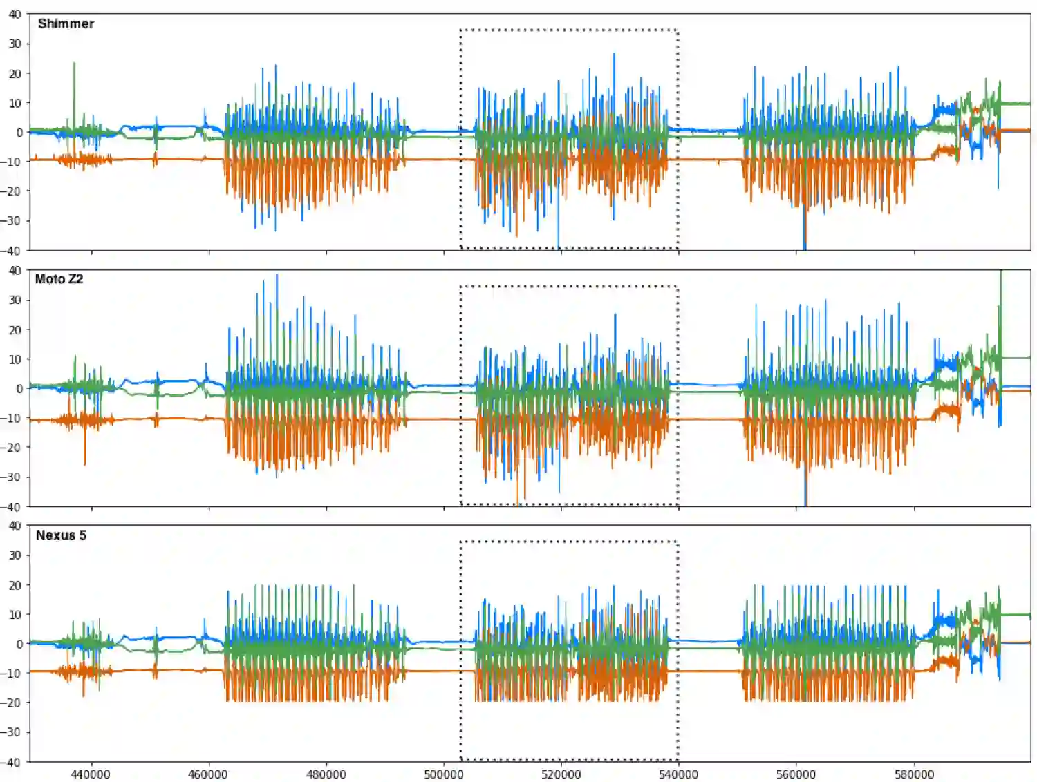 翻译:每年,我们越来越依赖磨损装置来收集个人化数据,例如我们的运动、心率、呼吸等。为了捕捉这些数据,装置含有感应器,例如加速计和陀螺仪,能够测量周围环境的变化并传递信息,以便作出更知情的决定。虽然这些感应器在不同装置中应表现相似,但情况并非总是如此。在本案例研究中,我们分析三个记录相同动作的不同装置的加速计,以确定这些差异是因装置内部还是不同装置之间的变异所致。我们发现不同规格的装置之间差异最大,例如灵敏度和取样频率。然而,数据的差异应该假设,即使数据来自同一人、活动和传感器类型。