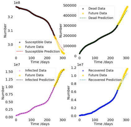 翻译:COVID-19大流行已经在全球产生了破坏性和不可逆转的影响,然而传统的流行病学模型方法,如易感感染恢复模式(SIR),在预测最新流行病情况方面成效有限,在这项工作中,采用易感疫苗接种受感染死复发模式(SVEIDR)模式及其变体 -- -- 年龄和疫苗接种结构的SVEIDR模式 -- -- 将社会接触对不同年龄组和疫苗接种状况的影响编码起来。然后,我们在模拟数据和实际世界数据方面实施物理知情神经网络(PINN),PINN模型使得能够对COVID-19分包模式的动态传播、预测和参数优化进行有力的分析。这些模型显示所有组成部分的相对根位平均误差(RRMESE)及其变体 -- -- 年龄和疫苗接种结构的变体 -- -- 年龄和疫苗接种结构型模式(Gammam=0.0224美元, 美元=0.0002美元, 美元和美元=0.002美元。对于最初310天的模拟神经网络数据,可以进一步对COVID-19分包模式进行精确分析。