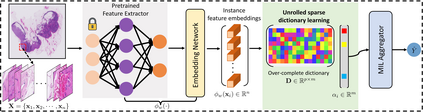 Multiple Instance Learning (MIL) has been widely used in weakly supervised whole slide image (WSI) classification. Typical MIL methods include a feature embedding part, which embeds the instances into features via a pre-trained feature extractor, and an MIL aggregator that combines instance embeddings into predictions. Most efforts have typically focused on improving these parts. This involves refining the feature embeddings through self-supervised pre-training as well as modeling the correlations between instances separately. In this paper, we proposed a sparsely coding MIL (SC-MIL) method that addresses those two aspects at the same time by leveraging sparse dictionary learning. The sparse dictionary learning captures the similarities of instances by expressing them as sparse linear combinations of atoms in an over-complete dictionary. In addition, imposing sparsity improves instance feature embeddings by suppressing irrelevant instances while retaining the most relevant ones. To make the conventional sparse coding algorithm compatible with deep learning, we unrolled it into a sparsely coded module leveraging deep unrolling. The proposed SC module can be incorporated into any existing MIL framework in a plug-and-play manner with an acceptable computational cost. The experimental results on multiple datasets demonstrated that the proposed SC module could substantially boost the performance of state-of-the-art MIL methods. The codes are available at \href{https://github.com/sotiraslab/SCMIL.git}{https://github.com/sotiraslab/SCMIL.git}.