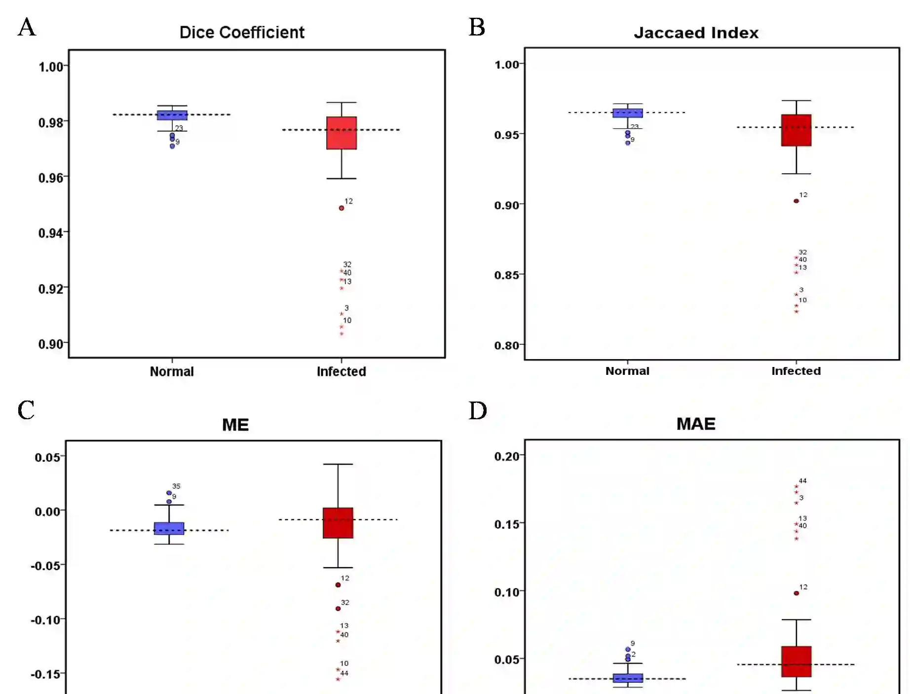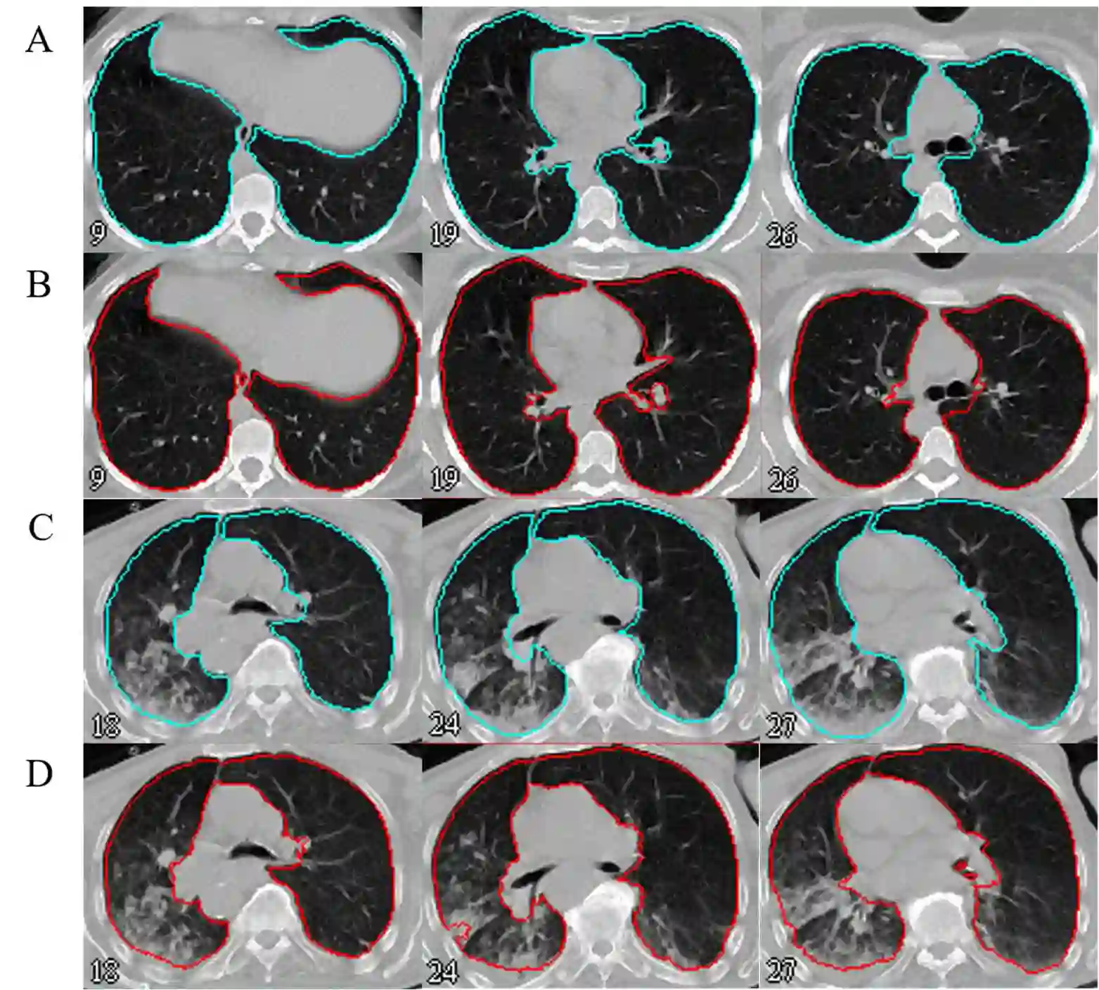 翻译:自动语义图象分解是定量图像分析和疾病诊断的一个重要步骤。本研究调查了正常病人和COVID-19病人的CT图像的肺部分解深学习模型的性能。使用了1200个确认的COVID-19病例的胸腔CT图像和相应的肺罩,用于培训残余神经网络。参考肺罩是通过CT图像半自动/人工分解生成的。该模型的性能在两个不同的外部测试数据集(包括120个普通和COVID-19科目)上进行了评估,并且对这些组别的结果进行了相互比较。不同的评估指标,例如:dice系数(DSC),平均值绝对差(MAE),相对平均HU值差异,以及相对体积差异,以评估预测的肺部面具的准确性能。拟议的深度学习方法分别达到0.980和0.971个正常和COVI-19科目的DS,表明预测和参考肺口罩之间有很大重叠。此外,基于0.037 HU和0.061 的MAE,这一正常值的温度值和正常值分析显示,正常值为5.9%和CO值部分的正常值(CO值部分)的正常值为0.49值的正常值和相对值为0.505,正常值的温度值值值的温度值为0.5。正常值的温度值为0.5,正常值值的数值和相对值值值值为0.5,正常值值值值值值值值值值值值值的数值值的数值的数值值的数值的数值的数值的数值的数值的数值的数值的数值和正值分析显示的数值和正值值值值值值值值值值值值值值值值的数值的数值的数值的数值分析显示分别为为0.4。