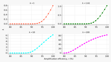 翻译:DNA量化的通用方法涉及DNA放大的反复循环。聚合酶链反应(PCR)使用的这一方法产生了因放大噪声而腐蚀的产出,使得精确反算输入DNA的数量具有挑战性。标准的计算方法没有充分考虑到这种噪音,而且容易出错。在这里,我们开发了一种对输入DNA进行分解式绘图的简单数学模型,用于实验结果,以自然的方式计算放大噪声。我们使用该模型来得出量化周期的概率密度,即经常报告的实验产出,适合数据来估计输入DNA。简而言之,该模型预测,只有一个输入DNA分子的样本的检测概率为 < 4%,比解释PCR数据的标准方法假设的值低25倍。我们提供了计算检测限度和量化限度的公式,这是经常通过应用定量技术来评估DNA定量方法的两种重要的操作特征。我们的DNA定量分析结果为DNA的精确分析提供了一种数学基础。