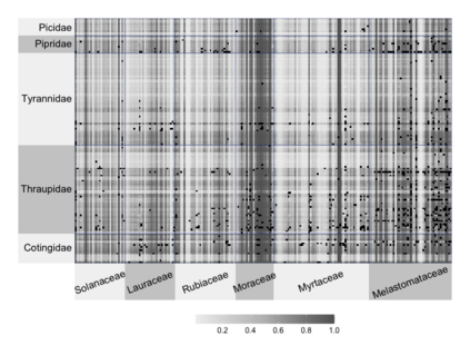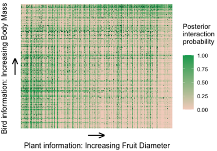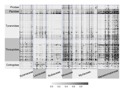 翻译:气候变化和自然生境的减少促使我们更好地了解物种的相互联系,以及生物群落如何对环境变化作出反应。然而,物种相互作用的生态研究受到地理和分类重点的限制,这可能导致某些物种严重代表不足,并扭曲我们对互动动态的理解。我们指出,忽视研究的焦点可能导致业绩不佳。我们制定了一种预测物种相互作用的方法,即(a) 说明记录的互动网络中的错误,(b) 处理现有研究的地理和分类偏差,(c) 以潜在因素为基础,以增加各物种间的灵活性和借阅信息,(d) 以灵活的方式纳入共变体,为潜在因素提供信息,(e) 使用85项单独研究的元分析数据集。我们注重巴西大西洋森林232只鸟和511只植物之间的互动,并查明5%的物种配对之间没有记录的互动,但事后概率可能超过80%以上。最后,我们为潜在要素网络模型制定了基于变异的重要性程序,并查明鸟类身体质量和植物水果直径与多种直径关系是一个重要的驱动因素。
