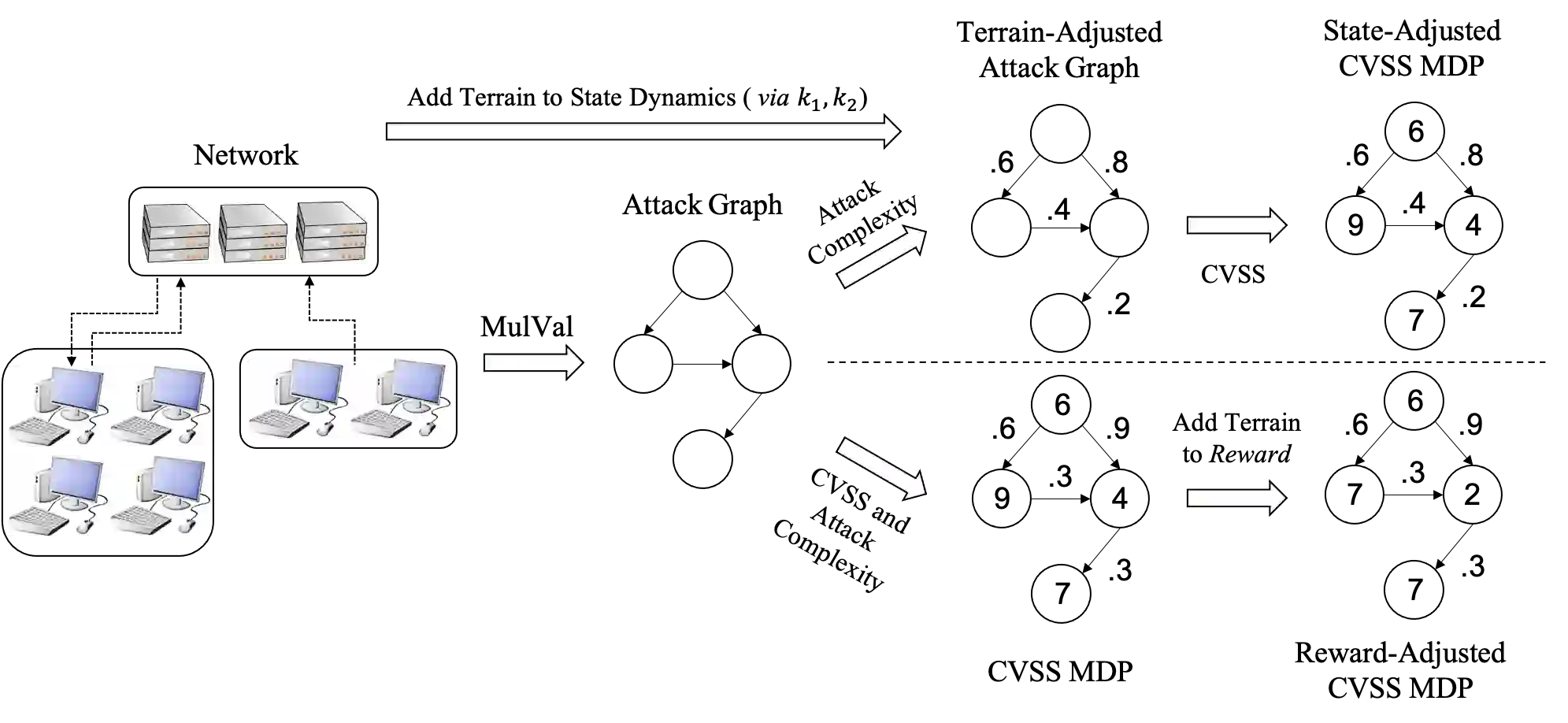 翻译:强化学习(RL)已被应用于用于渗透测试的攻击图,但是,受过训练的代理人没有反映现实,因为攻击图缺乏作战图中通常在战场(IPB)的情报准备中所捕捉到的操作上的细微差别,其中包括(cyber)地形的概念,特别是目前的做法只使用共同脆弱性计分系统(CVSS)及其组成部分来构建攻击图,我们提出了使用IPB关于对障碍、途径、关键地形、观察和火场以及掩护和隐藏进行网络地形分析的概念来构建攻击图的方法。我们展示了我们的方法,例如将防火墙作为障碍对待,并在(1) 奖励空间和(2) 状态动态中体现。我们表明,地形分析可以用来为RL带来攻击图的现实主义。