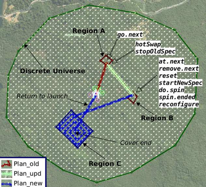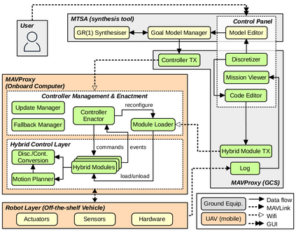 翻译:设计能够改变行为以考虑到设计时未预见到的假设情景的系统,仍然是一项公开的挑战。在本文件中,我们提议了对移动机器人飞行任务进行调整的方法,该方法不局限于一套预先确定的飞行任务演变。我们提议对无人驾驶飞行器应用MOMPH适应性软件结构,并表明如何使用控制器合成,既保证从旧任务向新任务目标的转变,又保证建筑重组,必要时包括新的软件驱动器和传感器。这一结构将机器人中常见的建筑概念汇集在一起,如时间规划、离散、混合和连续控制层,以及运行时间模型和运行时间合成等适应系统中的建筑概念。我们验证了从机器人文献中为不同实际和模拟无人驾驶飞行器飞行的若干任务的结构。