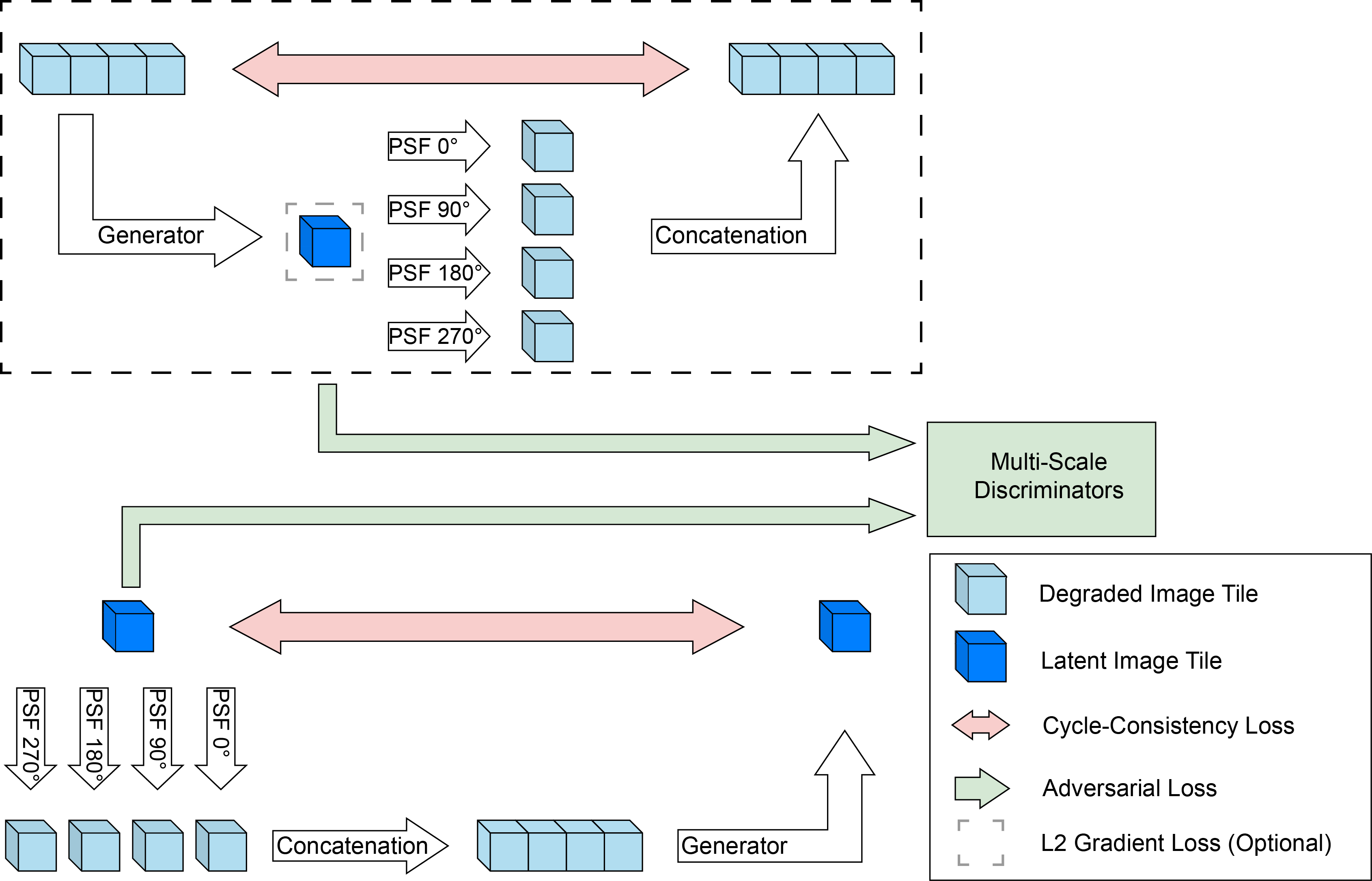 翻译:荧光显微镜的最近发展使得随着时间的推移能够捕捉活型生物体的高分辨率 3D 图像。为了能够图像甚至大型样本,多视光谱成像技术等技术在每个时间点记录不同方向,然后可以整合成单一的高质量体积。根据测量的点分布功能(PSF),分变和内容融合能够在很大程度上恢复成像过程期间不可避免的退化。经典多视分解和聚合方法主要使用迭代程序和内容平均。最近,革命神经网络(CNN)被应用到接近3D单视光谱显微镜上,但多视图案例有待研究。我们研究了基于CNN的多视图变异和聚合的两种合成数据集的功效,它们模拟胚胎,涉及两种或四种互补的三维观点。与典型的状态方法相比,拟议的半和自我监督模型在两视和四视案例中分别实现了竞争性和高级变异变和变质量。