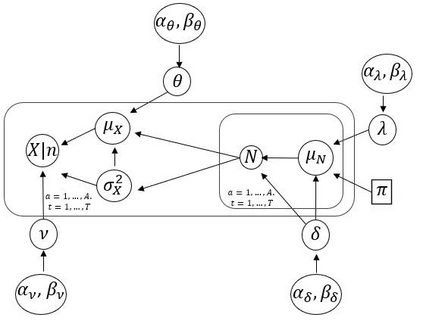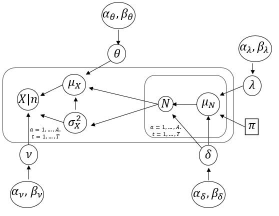 翻译:为了处理这一问题,提出了索赔分配中具有重尾部的集体风险的等级模型,其中也考虑到索赔数量的过度分散; 特别地,假设索赔总价值的对数分布遵循学生-学生分布法; 此外,为了纳入可能的过度分散,索赔数量模拟为负二进制分布模式; 援引贝叶西亚决定理论,根据修改后的绝对偏差效用计算公平溢价; 对医疗保险数据集的应用,连同一些诊断性措施一起提出,以确定过多的变异性; 利用边际外延或预测根据一些竞争性模型对溢价的分布进行分析; 最后,进行模拟研究,评估模型的预测能力和巴伊西亚估算程序的充足性; 关键词:连续的等级概率评分(CRPS); 决策理论; 保险数据; 边缘后游预测; 风险尾值; 风险值。
