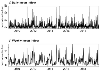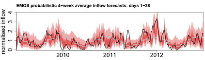 翻译:水流预测在水力水库管理方面发挥着必不可少的作用。预测有助于操作者提前安排发电时间,以尽量扩大经济价值,减轻下游洪水风险,并满足环境要求。运行流量预测的地平面往往限制在距未来约2周的距离,这标志着确定性天气预报的可预测性障碍。次季节至季节(S2S)范围的可靠流量预测将使操作者能够采取积极主动的行动,减轻不利天气条件的风险,从而改善水管理和增加收入。本研究报告概述了利用苏格兰高原的案例研究库获得熟练的S2S2S流入预测的方法。我们通过对观察到的流入S2S2的直线回归模型进行培训,产生加速的流量预测。欧洲中度天气预报中心(ECMWF)的混合降水量预测预测往往具有可预测性。随后,通过综合模型输出的处理技术来得出校准S2S2S概率预测,从而改进流量预测。我们发现,S2S2系统流量预测的稳定性预测在苏格兰高地进行,在预测中采用更精确的预测,在预测中,在预测中采用更精确的时期进行,在预测中,在预测中,在预测中进行更精确的预测,在预测中进行。在预测中,在预测中,在预测中采用更精确的周期中进行,在预测是,在预测是,在预测,在预测中进行,在预测中进行,在预测,在预测中,在预测中,在预测中,在预测中进行更精确到预测的期间进行,在预测,在预测的周期中,在预测是比前进行。