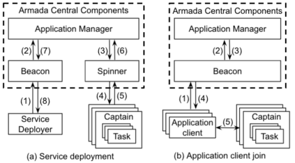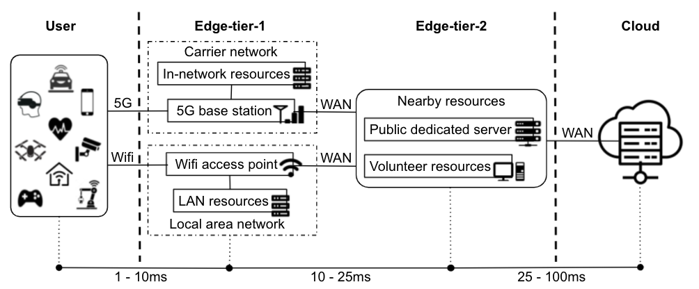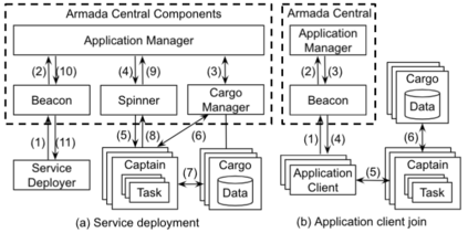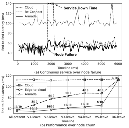 翻译:边缘计算通过利用数据接近和卸载悬浮敏感和计算密集的工作量,为周边边缘服务器提供了大量新出现的边缘应用。然而,由于在广域环境中支持边缘应用用户的规模有限,由于存在点边缘地点有限,弹性有限,因此带来了挑战。在本论文中,我们引入了Armada:一个密集分布的边缘云层基础设施,探索如何利用专门和志愿资源为不同环境中的地理分布用户服务。我们描述了轻量级 Armada结构和优化技术,包括性能认知边缘选择、自动缩放和负荷平衡以及现场数据访问。我们评估现实世界志愿环境和模拟平台的Armada,以显示如何在实时物体探测和面部识别等通用边缘应用可以很容易地部署在Armada,在低纬度范围内为分布的用户服务。