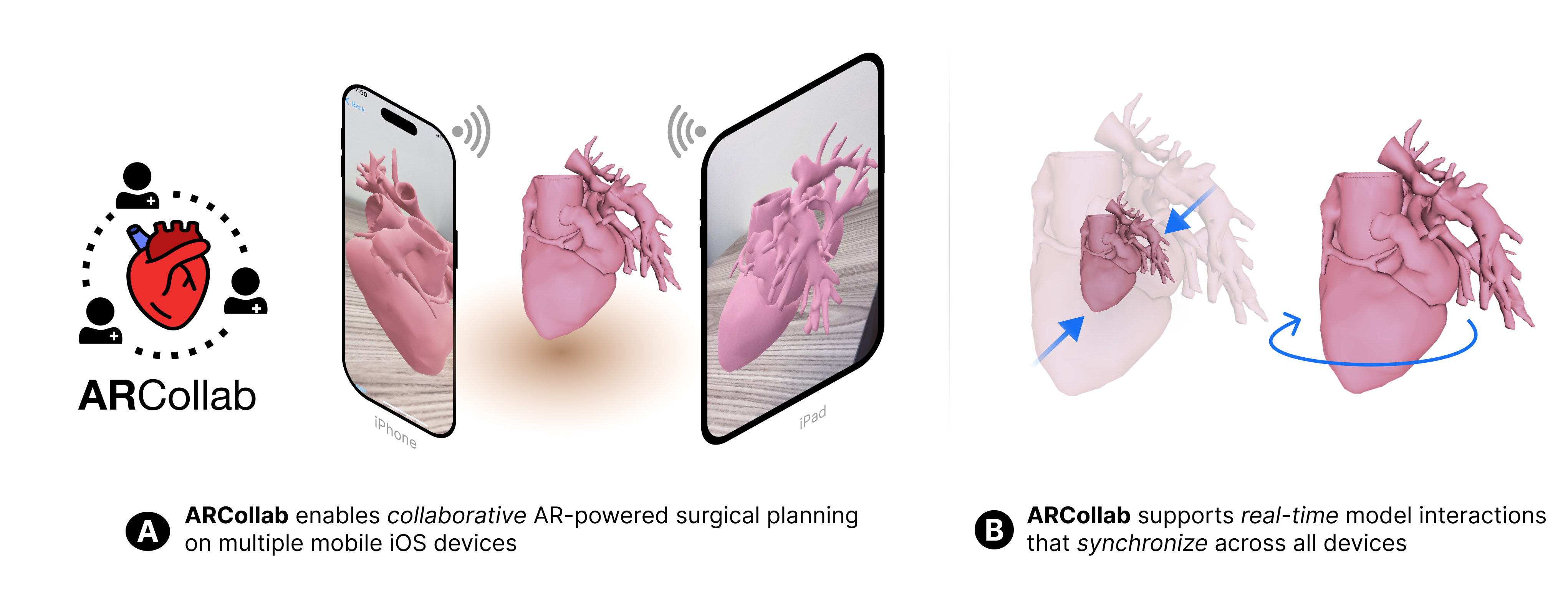 Surgical planning for congenital heart diseases requires a collaborative approach, traditionally involving the 3D-printing of physical heart models for inspection by surgeons and cardiologists. Recent advancements in mobile augmented reality (AR) technologies have offered a promising alternative, noted for their ease-of-use and portability. Despite this progress, there remains a gap in research exploring the use of multi-user mobile AR environments for facilitating collaborative cardiovascular surgical planning. We are developing ARCollab, an iOS AR application designed to allow multiple surgeons and cardiologists to interact with patient-specific 3D heart models in a shared environment. ARCollab allows surgeons and cardiologists to import heart models, perform gestures to manipulate the heart, and collaborate with other users without having to produce a physical heart model. We are excited by the potential for ARCollab to make long-term real-world impact, thanks to the ubiquity of iOS devices that will allow for ARCollab's easy distribution, deployment and adoption.