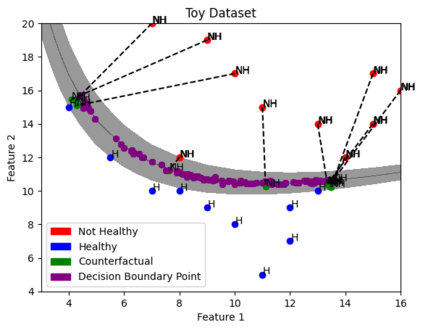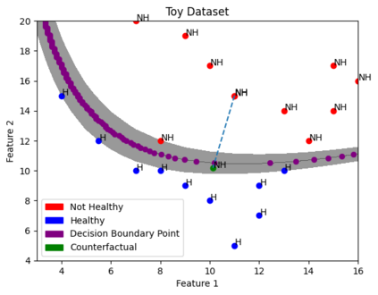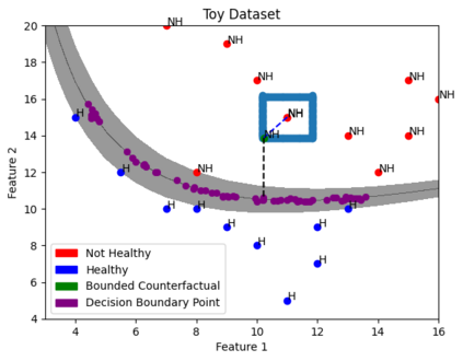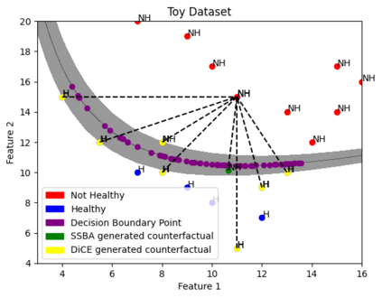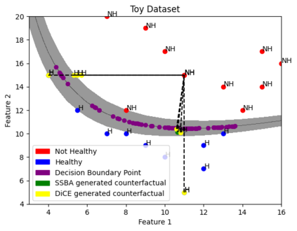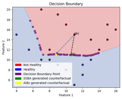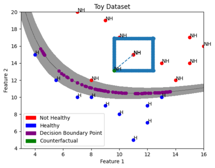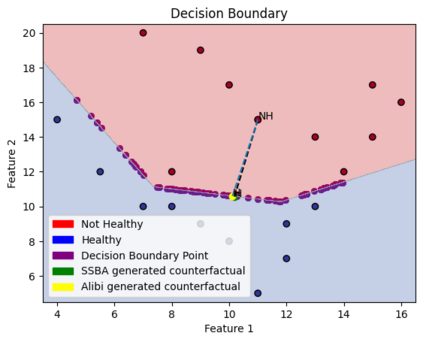In our article, we describe a method for generating counterfactual explanations in high-dimensional spaces using four steps that involve fitting our dataset to a model, finding the decision boundary, determining constraints on the problem, and computing the closest point (counterfactual explanation) from that boundary. We propose a discretized approach where we find many discrete points on the boundary and then identify the closest feasible counterfactual explanation. This method, which we later call $\textit{Segmented Sampling for Boundary Approximation}$ (SSBA), applies binary search to find decision boundary points and then searches for the closest boundary point. Across four datasets of varying dimensionality, we show that our method can outperform current methods for counterfactual generation with reductions in distance between $5\%$ to $50\%$ in terms of the $L_2$ norm. Our method can also handle real-world constraints by restricting changes to immutable and categorical features, such as age, gender, sex, height, and other related characteristics such as the case for a health-based dataset. In terms of runtime, the SSBA algorithm generates decision boundary points on multiple orders of magnitude in the same given time when we compare to a grid-based approach. In general, our method provides a simple and effective model-agnostic method that can compute nearest feasible (i.e. realistic with constraints) counterfactual explanations. All of our results and code are available at: https://github.com/dsin85691/SSBA_For_Counterfactuals