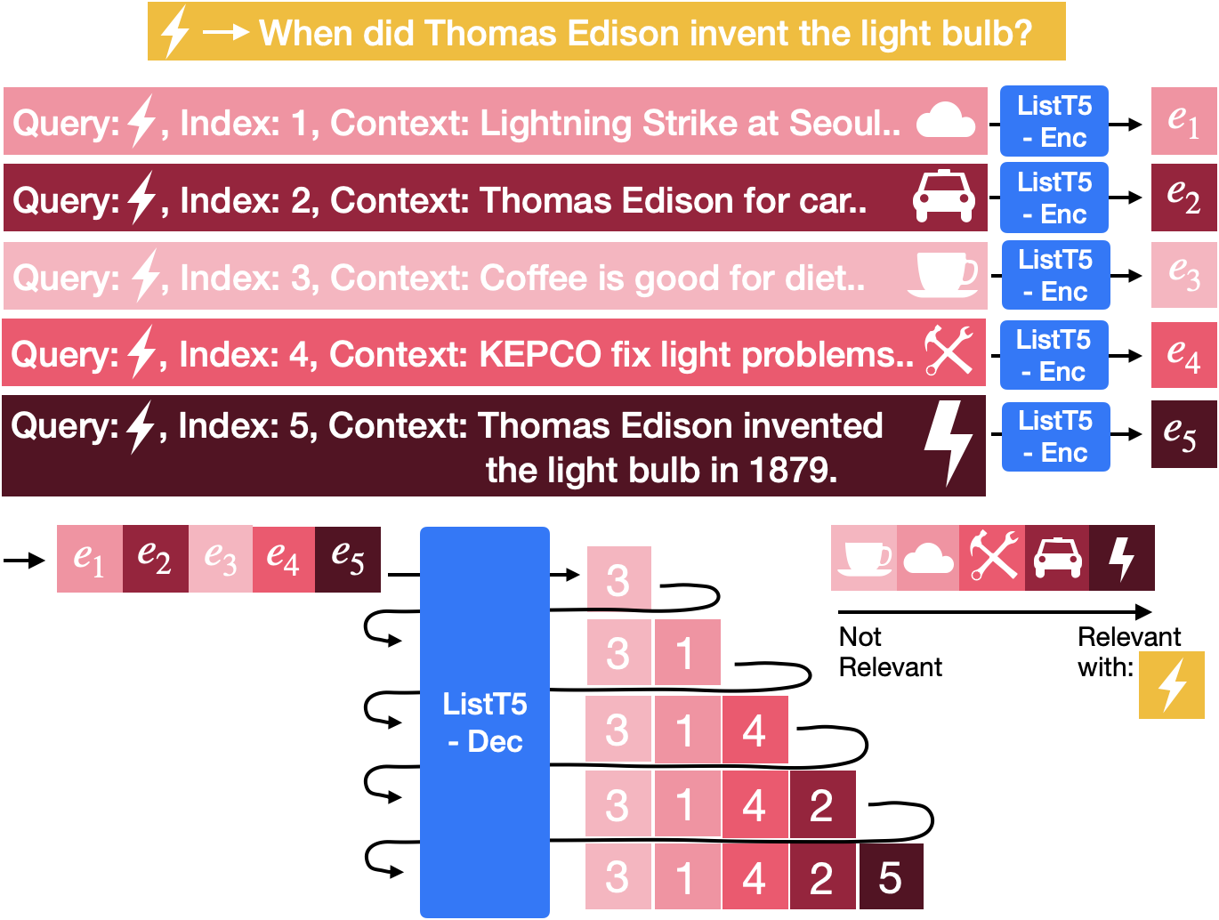 We propose ListT5, a novel reranking approach based on Fusion-in-Decoder (FiD) that handles multiple candidate passages at both train and inference time. We also introduce an efficient inference framework for listwise ranking based on m-ary tournament sort with output caching. We evaluate and compare our model on the BEIR benchmark for zero-shot retrieval task, demonstrating that ListT5 (1) outperforms the state-of-the-art RankT5 baseline with a notable +1.3 gain in the average NDCG@10 score, (2) has an efficiency comparable to pointwise ranking models and surpasses the efficiency of previous listwise ranking models, and (3) overcomes the lost-in-the-middle problem of previous listwise rerankers. Our code, model checkpoints, and the evaluation framework are fully open-sourced at \url{https://github.com/soyoung97/ListT5}.