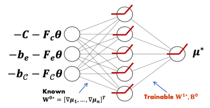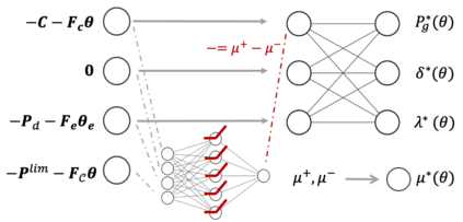 Neural Networks (NN) with ReLU activation functions are used to model multiparametric quadratic optimization problems (mp-QP) in diverse engineering applications. Researchers have suggested leveraging the piecewise affine property of deep NN models to solve mp-QP with linear constraints, which also exhibit piecewise affine behaviour. However, traditional deep NN applications to mp-QP fall short of providing optimal and feasible predictions, even when trained on large datasets. This study proposes a partially-supervised NN (PSNN) architecture that directly represents the mathematical structure of the global solution function. In contrast to generic NN training approaches, the proposed PSNN method derives a large proportion of model weights directly from the mathematical properties of the optimization problem, producing more accurate solutions despite significantly smaller training data sets. Many energy management problems are formulated as QP, so we apply the proposed approach to energy systems (specifically DC optimal power flow) to demonstrate proof of concept. Model performance in terms of solution accuracy and speed of predictions was compared against a commercial solver and a generic Deep NN model based on classical training. Results show KKT sufficient conditions for PSNN consistently outperform generic NN architectures with classical training using far less data, including when tested on extreme, out-of-training distribution test data. Given its speed advantages over traditional solvers, the PSNN model can quickly produce optimal and feasible solutions within a second for millions of input parameters sampled from a distribution of stochastic demands and renewable generator dispatches, which can be used for simulations and long term planning.