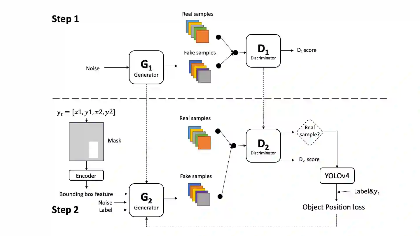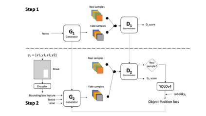 翻译:在数据集小的时候,数据扩增一直是克服超配问题的有效办法。 已经有许多扩增操作, 如水平翻转、随机裁剪甚至混合等。 然而, 与图像分类任务不同, 我们无法简单地执行这些用于目标探测任务的操作, 原因是缺少贴有标签的捆绑框信息, 用于相应的生成图像。 为了应对这一挑战, 我们提议了一个框架, 利用基因反转网络( GAN) 来进行不受监督的数据扩增 。 要具体化, 我们基于最近YOLOv4 的最高性能, 我们提议了一条两步管道, 使我们能够生成一个图像, 显示对象处于某种位置。 这样, 我们就可以实现一个目标, 即通过捆绑框标签生成图像 。
