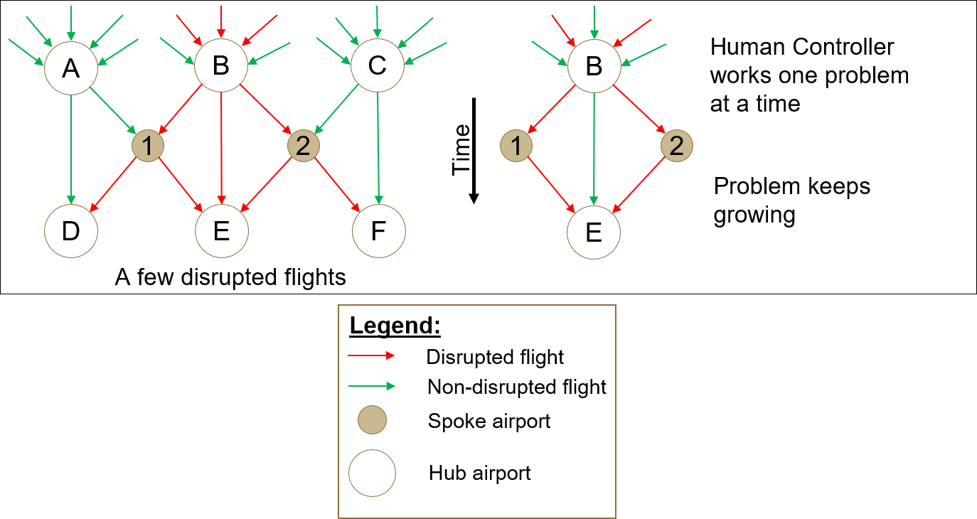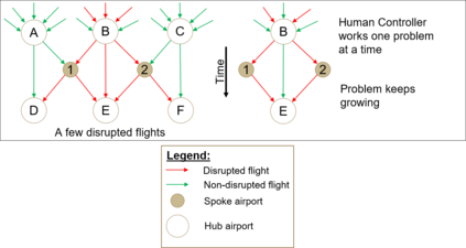 翻译:航空中断管理传统上力求解决三个问题:飞机时间安排、机组人员时间安排和乘客日程安排,按此顺序排列;不过,目前的努力最多只能同时处理头两个问题,而没有考虑到一个方面不确定的日程安排结果可能对另一个方面产生的传播效应;此外,现有航空中断管理办法包括决定对运营当日的航班日程安排中断采取必要的纠正行动的人类专家;然而,人类专家处理大量信息的能力有限,无法同时作出强有力的决定,同时处理中断管理期间的所有问题层面;因此,有必要加强一名拥有定量和定性工具的人类专家的决策能力,使航空中断管理所有层面之间的复杂互动合理化,并向航空业务控制中心的专家提供客观的见解;为此,我们讨论并演示一个不可忽视和系统范式,以便在航空中断管理期间,通过一个智能多剂系统,利用人工情报和分配分类技术的原则,迅速综合恢复所有问题层面;结果表明,当航线网络的所有航班被中断时,我们同时进行综合恢复的模式是有效的。