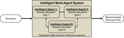 Airline disruption management traditionally seeks to address three problem dimensions: aircraft scheduling, crew scheduling, and passenger scheduling, in that order. However, current efforts have, at most, only addressed the first two problem dimensions concurrently and do not account for the propagative effects that uncertain scheduling outcomes in one dimension can have on another dimension. In addition, existing approaches for airline disruption management include human specialists who decide on necessary corrective actions for airline schedule disruptions on the day of operation. However, human specialists are limited in their ability to process copious amounts of information imperative for making robust decisions that simultaneously address all problem dimensions during disruption management. Therefore, there is a need to augment the decision-making capabilities of a human specialist with quantitative and qualitative tools that can rationalize complex interactions amongst all dimensions in airline disruption management, and provide objective insights to the specialists in the airline operations control center. To that effect, we provide a discussion and demonstration of an agnostic and systematic paradigm for enabling expeditious simultaneously-integrated recovery of all problem dimensions during airline disruption management, through an intelligent multi-agent system that employs principles from artificial intelligence and distributed ledger technology. Results indicate that our paradigm for simultaneously-integrated recovery is effective when all the flights in the airline route network are disrupted.