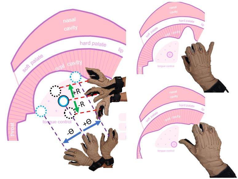 翻译:这项工作展示了我们在控制动脉语音合成引擎(\textit{viz.}) Pink Trombone 上的进展, 带有手势。 我们的界面将连续的手指移动和手腕伸缩转换成连续的语音, 使用声控片区域功能的动脉功能声波合成。 我们使用网络球二, 配有18个传感器, 以捕捉手腕和手指的感官信息, 以控制虚拟舌头。 然后, 传感器的坐标和弯曲值被用来适应一个滑动的舌头模型, 以平息吵闹的值和外缘值。 考虑到上方和样样模型是固定的, 我们计算1D区域功能值, 用于粉红特罗姆本, 产生连续的语音声音。 因此, 通过学会操纵手腕和手指, 人们可以学会通过手来产生语音声音, 不需要使用声控 。
