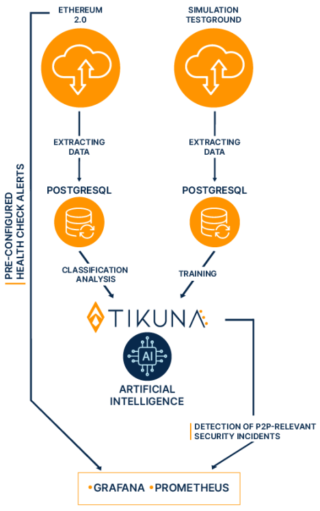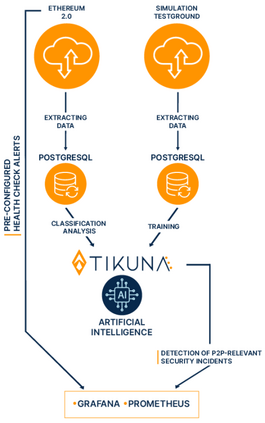 Blockchain security is becoming increasingly relevant in today's cyberspace as it extends its influence in many industries. This paper focuses on protecting the lowest level layer in the blockchain, particularly the P2P network that allows the nodes to communicate and share information. The P2P network layer may be vulnerable to several families of attacks, such as Distributed Denial of Service (DDoS), eclipse attacks, or Sybil attacks. This layer is prone to threats inherited from traditional P2P networks, and it must be analyzed and understood by collecting data and extracting insights from the network behavior to reduce those risks. We introduce Tikuna, an open-source tool for monitoring and detecting potential attacks on the Ethereum blockchain P2P network, at an early stage. Tikuna employs an unsupervised Long Short-Term Memory (LSTM) method based on Recurrent Neural Network (RNN) to detect attacks and alert users. Empirical results indicate that the proposed approach significantly improves detection performance, with the ability to detect and classify attacks, including eclipse attacks, Covert Flash attacks, and others that target the Ethereum blockchain P2P network layer, with high accuracy. Our research findings demonstrate that Tikuna is a valuable security tool for assisting operators to efficiently monitor and safeguard the status of Ethereum validators and the wider P2P network
