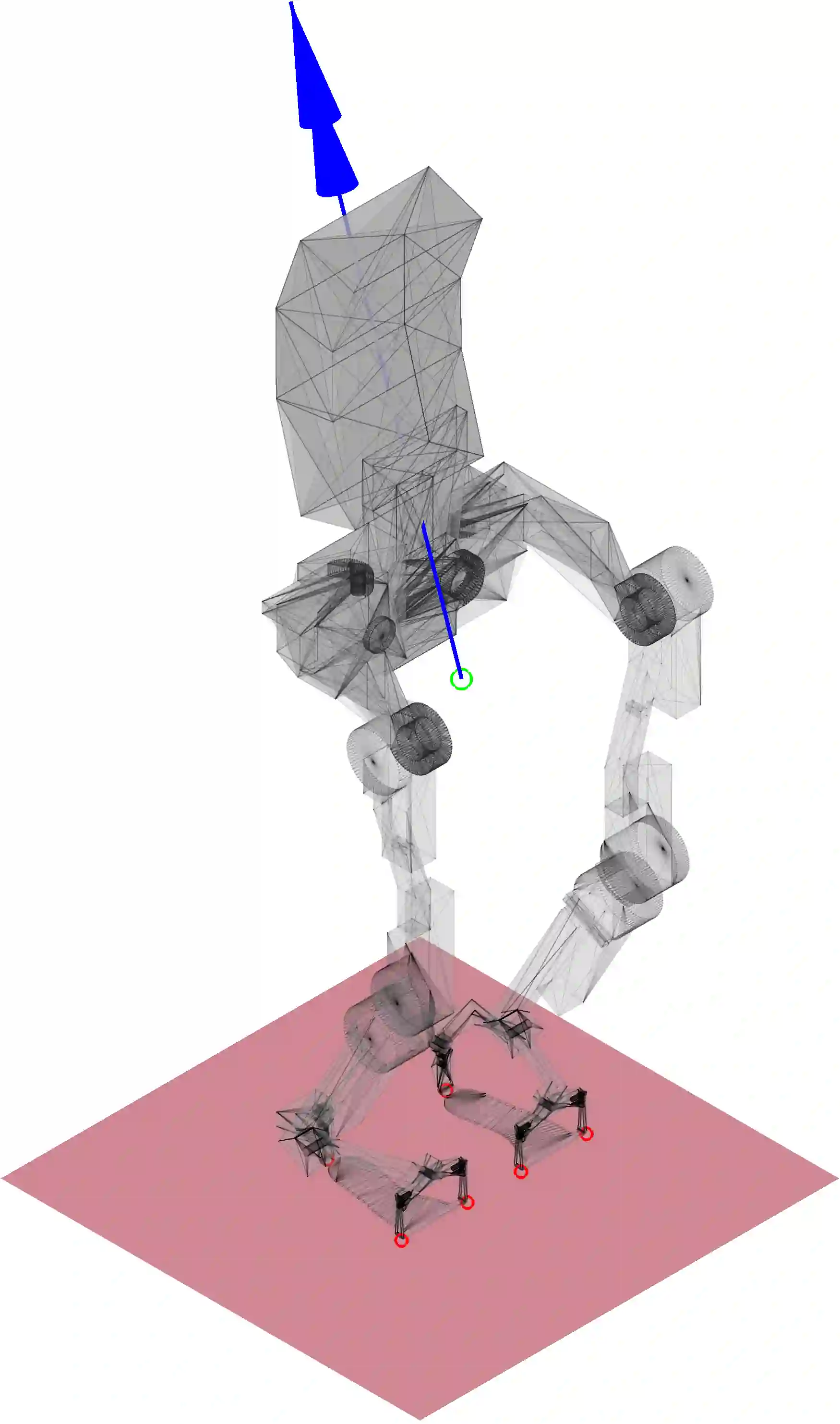 翻译:在滚动期间, 腿上的机器人通过按顺序建立和断开接触与地面互动。 接触产生的交互扳手用于引导机器人的 Mass 中心( COM), 并拒绝使系统偏离预期轨迹并经常使其跌落的扰动。 特定控制目标( 需要的 CoM 扳手或加速) 的可行性取决于联络点分布、 地面摩擦和动作限制 。 这项工作中, 我们开发一种算法, 以计算一组可行的被动扳手, 使一个弯曲的机器人可以通过接触来影响其 CoM 。 所提出的方法可以使用任何数量的非机械接触来使用, 并使用基于无弹性接触模型的操作限制和限制来让系统偏离所需的轨迹轨迹 。 使用一个平面模型和脚站在不同高度上 。 使用接触模型的假设, 我们解释如何在接触时在COM 上计算一套有用的电动扳手法, 以及当接触的某些不可行时, 使用非腿的操作方法可以使用。 因此, 使用一个不易变换的动作的动作, 将显示一个系统的设计方向。 将显示一个手法 。 显示一个系统在操作中, 显示一个可变动的动作 方向。 如何 。 。 。 使用一个动作 。 。 将一个动作 将一个动作 显示一个动作 显示一个可变式 操作 显示一个操作 。 。 。 。 操作 操作 。