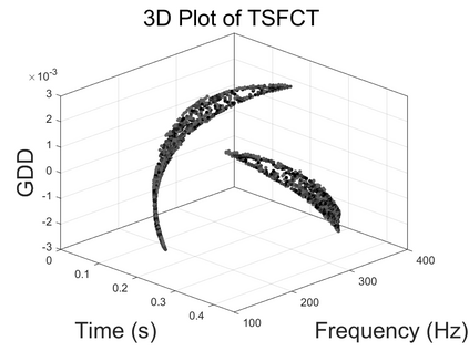 To analyze signals with rapid frequency variations or transient components, the time-reassigned synchrosqueezing transform (TSST) and its variants have been recently proposed. Unlike the traditional synchrosqueezing transform, TSST squeezes the time-frequency (TF) coefficients along the group delay (GD) trajectories rather than the instantaneous frequency trajectories. Although TSST methods perform well in analyzing transient signals, they are fundamentally limited in processing multicomponent signals with intersecting GD curves. This limitation compromises the accuracy of both feature extraction and signal component recovery, thereby significantly reducing the interpretability of time-frequency representations (TFRs). This is particularly problematic in broadband signal processing systems, where the linearity of the phase response is critical and precise measurement of group delay dispersion (GDD) is essential. Motivated by the superior capability of frequency-domain signal modeling in characterizing rapidly frequency-varying signals, this paper proposes a novel three-dimensional time-frequency-group delay dispersion (TF-GDD) representation based on the frequency-domain chirplet transform. A subsequent time-reassigned synchrosqueezing frequency-domain chirplet transform (TSFCT) is introduced to achieve a sharper TF-GDD distribution and more accurate GD estimation. For mode retrieval, a novel frequency-domain group signal separation operation (FGSSO) is proposed.The theoretical contributions include a derivation of the approximation error for the GD and GDD reference functions and an establishment of the error bounds for FGSSO-based mode retrieval. Experimental results demonstrate that the proposed TSFCT and FGSSO effectively estimate GDs and retrieve modes--even for modes with intersecting GD trajectories.