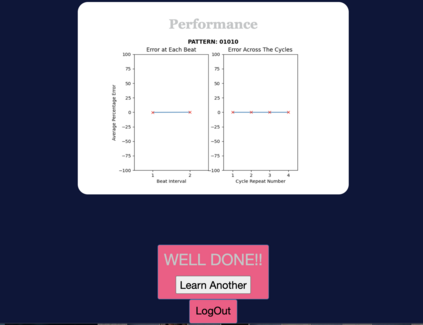 We present a computational assessment system that promotes the learning of basic rhythmic patterns. The system is capable of generating multiple rhythmic patterns with increasing complexity within various cycle lengths. For a generated rhythm pattern the performance assessment of the learner is carried out through the statistical deviations calculated from the onset detection and temporal assessment of a learner's performance. This is compared with the generated pattern, and their performance accuracy forms the feedback to the learner. The system proceeds to generate a new pattern of increased complexity when performance assessment results are within certain error bounds. The system thus mimics a learner-teacher relationship as the learner progresses in their feedback-based learning. The choice of progression within a cycle for each pattern is determined by a predefined complexity metric. This metric is based on a coded element model for the perceptual processing of sequential stimuli. The model earlier proposed for a sequence of tones and non-tones, is now used for onsets and silences. This system is developed into a web-based application and provides accessibility for learning purposes. Analysis of the performance assessments shows that the complexity metric is indicative of the perceptual processing of rhythm patterns and can be used for rhythm learning.