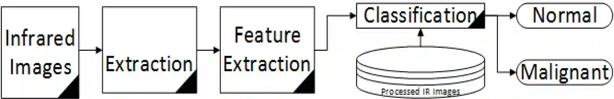 翻译:本文探讨了红外线成像(IR)在乳腺癌检测中的潜在贡献,比较了使用某些算法检测恶性乳腺状况的结果,如支持矢量机(SVM)在应用公共数据时不同方法的一致性,此外,为了利用实际的IR成像能力作为临床试验的补充,并推广使用高分辨率IR成像的研究,我们认为使用由经过可靠培训的乳房医生修改的公共数据库至关重要,我们在工作中只考虑静态获取协议。我们使用了Pro Engenharia(PROENG)公共数据库(54正常和48及一些发现)的LO2IR单乳房图像,这些图像是从联邦伯南布科大学医院收集的,我们采用了提出最佳结果并达到61.7%的精确度的工作作者提出的相同特征,以及使用Squenal Minminal最佳化(SMO)分类仪的0.24的Youden指数。