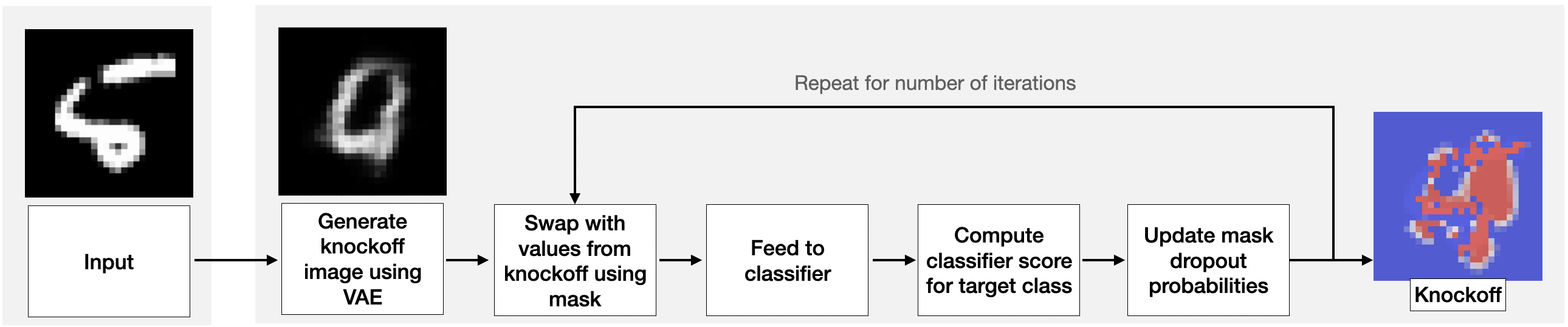 Human interpretability of deep neural networks' decisions is crucial, especially in domains where these directly affect human lives. Counterfactual explanations of already trained neural networks can be generated by perturbing input features and attributing importance according to the change in the classifier's outcome after perturbation. Perturbation can be done by replacing features using heuristic or generative in-filling methods. The choice of in-filling function significantly impacts the number of artifacts, i.e., false-positive attributions. Heuristic methods result in false-positive artifacts because the image after the perturbation is far from the original data distribution. Generative in-filling methods reduce artifacts by producing in-filling values that respect the original data distribution. However, current generative in-filling methods may also increase false-negatives due to the high correlation of in-filling values with the original data. In this paper, we propose to alleviate this by generating in-fillings with the statistically-grounded Knockoffs framework, which was developed by Barber and Cand\`es in 2015 as a tool for variable selection with controllable false discovery rate. Knockoffs are statistically null-variables as decorrelated as possible from the original data, which can be swapped with the originals without changing the underlying data distribution. A comparison of different in-filling methods indicates that in-filling with knockoffs can reveal explanations in a more causal sense while still maintaining the compactness of the explanations.