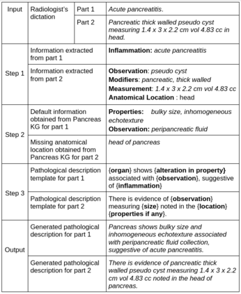 翻译:在《公约》中,放射学家编写诊断说明,并将这些诊断说明与抄录员分享。然后,抄录员编写初步格式化报告,提及笔记,最后,放射学家审查报告,纠正错误和签名。这一工作流程导致报告出现重大延误和错误。在目前的研究工作中,我们侧重于应用国家实验室技术,如信息提取(IE)和特定域知识图(KG),从放射学家的口述中自动生成放射报告。本文侧重于每个器官的KG构造,从现有的大量自由文本放射报告中提取信息。我们开发了一个信息提取管道,将基于规则的、基于模式的和基于字典的技术与基于词汇的技术结合起来,以提取实体和关系。短口述中缺失的信息可以从 KGs获得,以生成病理描述,从而生成放射学报告。使用语义相似度度度测量的基因学描述显示病理学描述,显示97%与金质标准病理描述相似性。此外,我们的分析显示,我们的IE模块将基于规则的、模式和基于字典的技术与基于词汇的特性特性特性的特性技术结合,我们从80年的放射学中还含有了正确性分析。