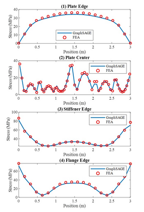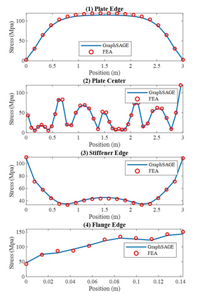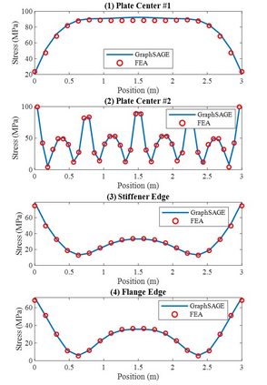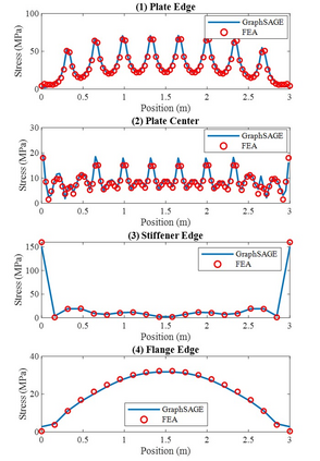 Machine learning (ML) and deep learning (DL) techniques have gained significant attention as reduced order models (ROMs) to computationally expensive structural analysis methods, such as finite element analysis (FEA). Graph neural network (GNN) is a particular type of neural network which processes data that can be represented as graphs. This allows for efficient representation of complex geometries that can change during conceptual design of a structure or a product. In this study, we propose a novel graph embedding technique for efficient representation of 3D stiffened panels by considering separate plate domains as vertices. This approach is considered using Graph Sampling and Aggregation (GraphSAGE) to predict stress distributions in stiffened panels with varying geometries. A comparison between a finite-element-vertex graph representation is conducted to demonstrate the effectiveness of the proposed approach. A comprehensive parametric study is performed to examine the effect of structural geometry on the prediction performance. Our results demonstrate the immense potential of graph neural networks with the proposed graph embedding method as robust reduced-order models for 3D structures.