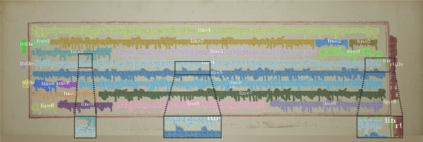 翻译:准确的布局分析,而没有随后的文字线分割,仍然是一项持续的挑战,特别是在面临藏藏历史文件Kangyur时,这是一种藏藏历史文件,具有相当的触摸成分和扭曲的背景。为了在文件图像中辨别不同区域,布局分析对于随后的程序,例如字符识别等程序是必不可少的。然而,目前只进行了一些小研究,以进行线级布局分析,而未能处理Kangyur的布局分析。为了取得最佳结果,提出了细微细微的子线级布局分析方法。首先,我们采用了一种加速的方法,以构建动态和可靠的数据集。第二,根据Kangyur的特征对SOLov2进行了改进。然后,我们在培训阶段用已编写的说明文件向增强的SOLov2提供了强化的SOLov2。一旦网络培训,文字线、句和标题的一些实例可以在推断阶段进行分解和识别。实验结果显示,拟议的方法为我们数据集提供了适当的72.7% 总的来说,这一初步研究为精细的SOLO2版式版图提供了深刻的见解,我们还相信以各种方法。