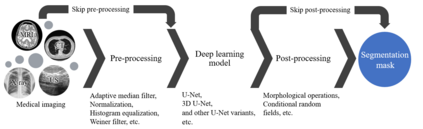 翻译:随着深层学习方法的发展,例如深卷神经网络、残余神经网络、残余神经网络、对抗性网络;U-Net结构在生物医学图像分割中被最广泛利用,以解决识别和检测目标区域或次区域的自动化;在最近的研究中,基于U-Net的方法展示了在开发计算机辅助诊断系统以早期诊断和治疗诸如脑肿瘤、肺癌、阿尔兹海默、乳癌等疾病的各种应用方面的最新表现,并使用了多种模式。本文章通过描述U-Net框架,然后全面分析U-Net变异体,执行(1) 相互模式和(2) 内部模式分类,以更好地了解相关的挑战和解决办法。此外,本文章还重点介绍了基于U-Net的框架在目前流行的流行病、严重急性呼吸系统综合症冠状病毒2 (SARS-COV-2) (又称COVID-19) 中的贡献。最后,对U-Net变异体的优点和相似性作了介绍,然后对U-Net变体进行了全面分析,并分析了生物医学图段的未来研究方向。