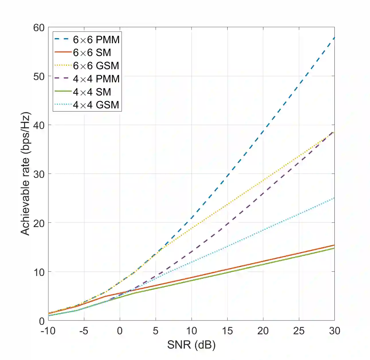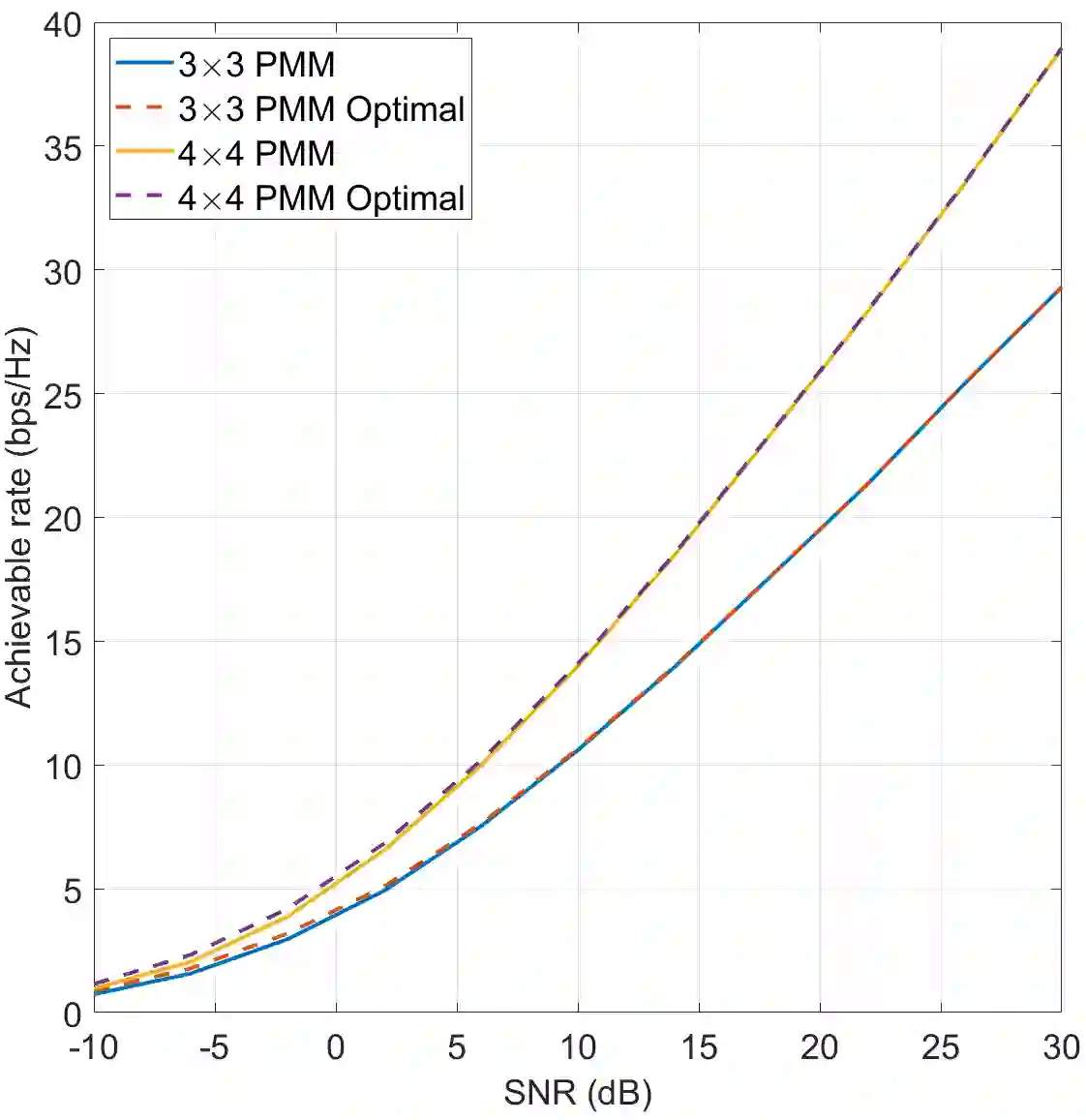 翻译:我们提出一个新方案,让IMIMO系统能够调整一套调整矩阵,以发送更多的信息比特,扩大我们关于这个专题的初步工作。这个系统称为“变异矩阵模型模型(PMM) ” 。其基本想法是使用一个变异矩阵矩阵作为预解解器,并将其作为一个调制符号。我们继续通过采用全ANETnn纳的激活和从改变天天天传输功传输力位置改变天天线传输力位置获得一套独特的符号,在MOIM上演一套新方案,使MIM系统能够调制成一套新的矩阵,以发送更多的信息比特,扩展我们的初始工作。这个系统称为“变异矩阵矩阵模型”的最初工作。这个系统称为“变异矩阵模型”的最初工作。这个系统的基本想法是使用一个变异变矩阵作为预解器,将它作为调制符号错误率的模型,并把它当作一个调制符号传输信号传输传输能力最优化的标志调控点问题。我们提议了一个基于零叉(ZF)的低复杂探测机制,并讨论最大可能性(ML)探测。我们演示了在模拟符号错误率(SER)的模拟中,但更差的模拟需要更低的MZMZ进行比MZ的模拟,但更低的模拟需要,进行更低的MZ(MZ)和计算,进行更更更低的MZL)的比的模拟,进行。